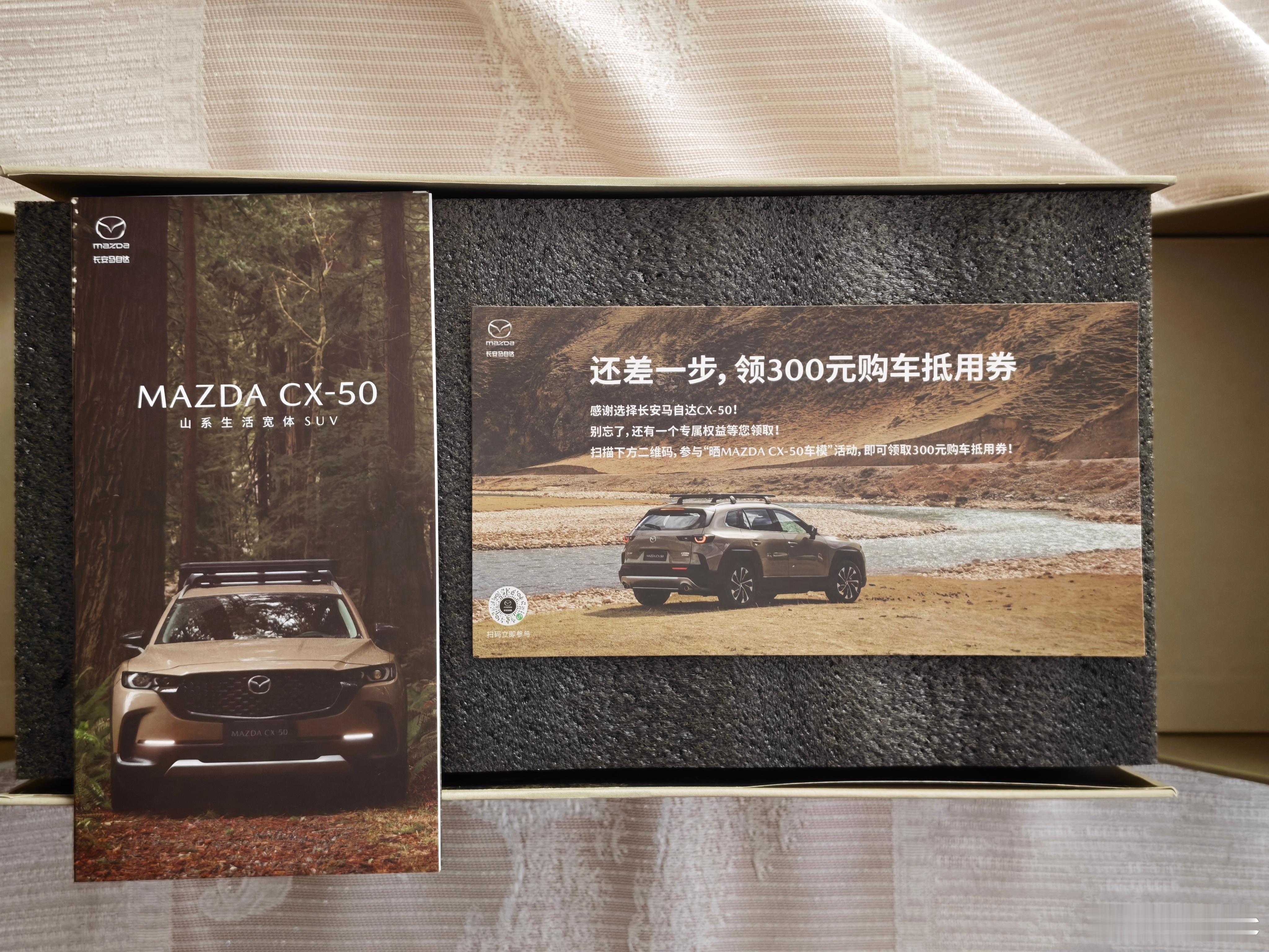 想起当年CX-50刚上市的时候推出的活动,199元小定送个价值699元的模型(不可退),相当于199元买个车模了。封存快三年,拿出来一看,这玩意精致程度的确是具有一定水平的。顺便,我还收集了中国大陆几乎所有版本的CX-50宣传册,包括一本我没有在其它任何地方见过的、标记着“仅供经销商内部学习”的车书,我把它们直接放进了车模的包装袋里,长期收藏。