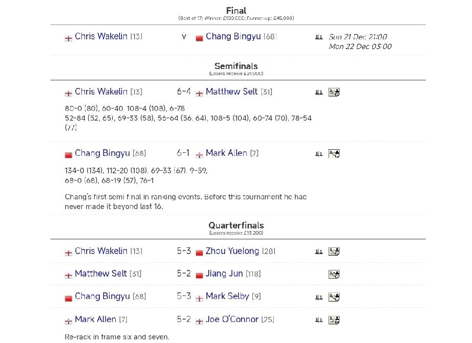 不得了! 看看常冰玉这几天都赢了谁? 雷佩凡去年一鸣惊人,出乎所有人意料,夺得了斯诺克苏格兰公开赛的冠军,上演了一幕丑小鸭变天鹅的梦幻剧! 今年,童话再次上演第二季! 主角是同样来自中国新疆2002年出生的小将常冰玉。 看看这周常冰玉的表现: 64进32 4-2斯蒂芬·马奎尔 32进16 4-1斯佳辉 16进8 4-1凯伦·威尔逊 8进4 5-3马克·塞尔比 半决赛 6-1马克·艾伦 一个人赢了整个斯诺克世界! 今夜明晨,常冰玉挑战克里斯·韦克林,力争捧杯!
