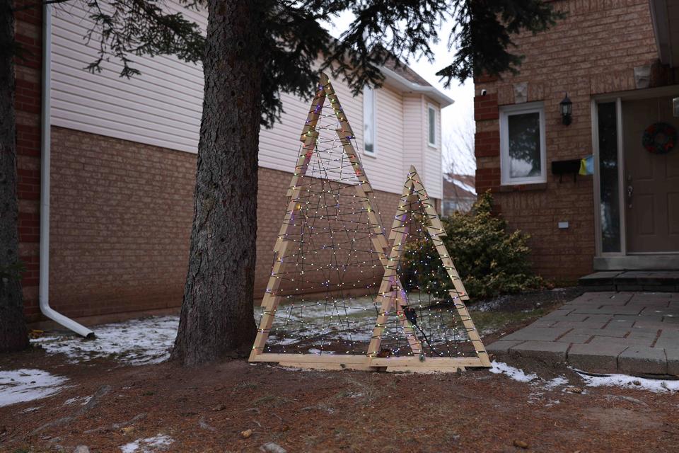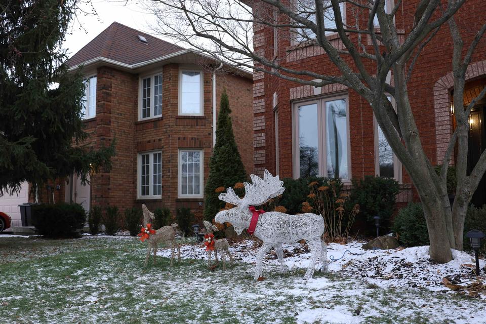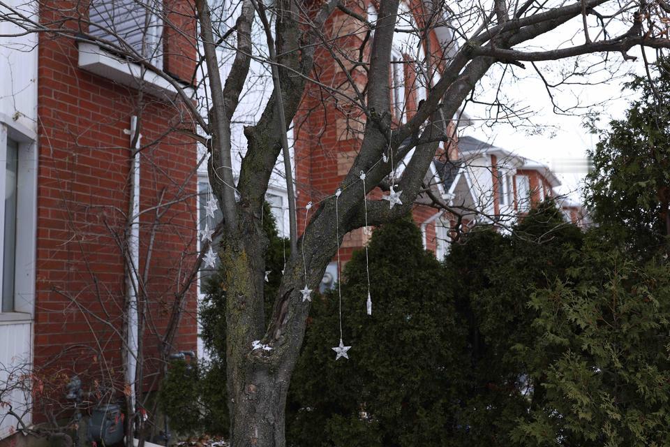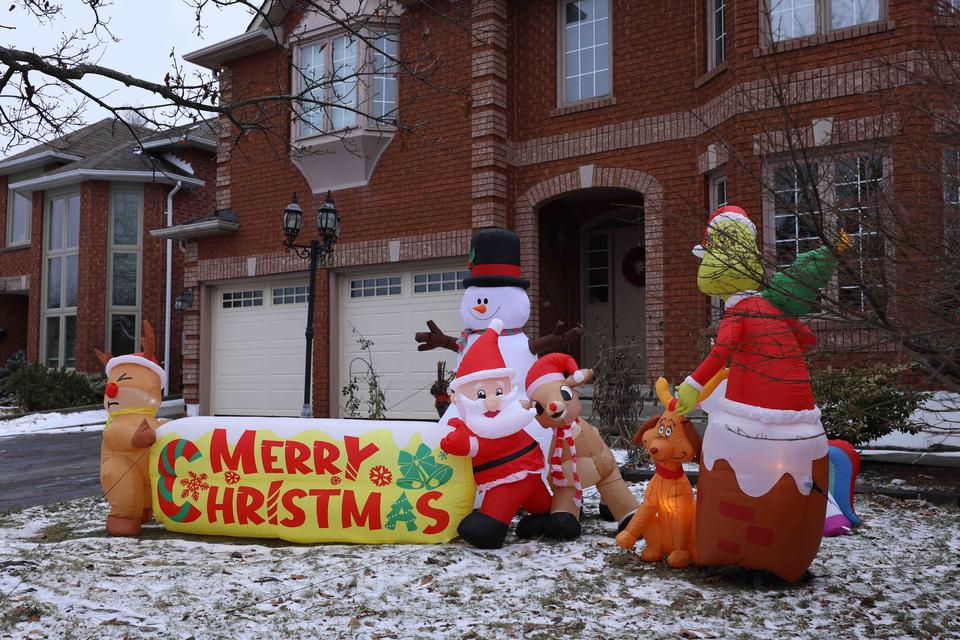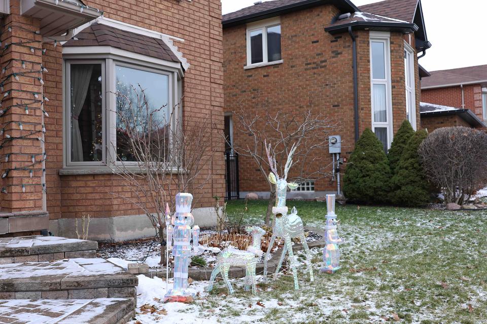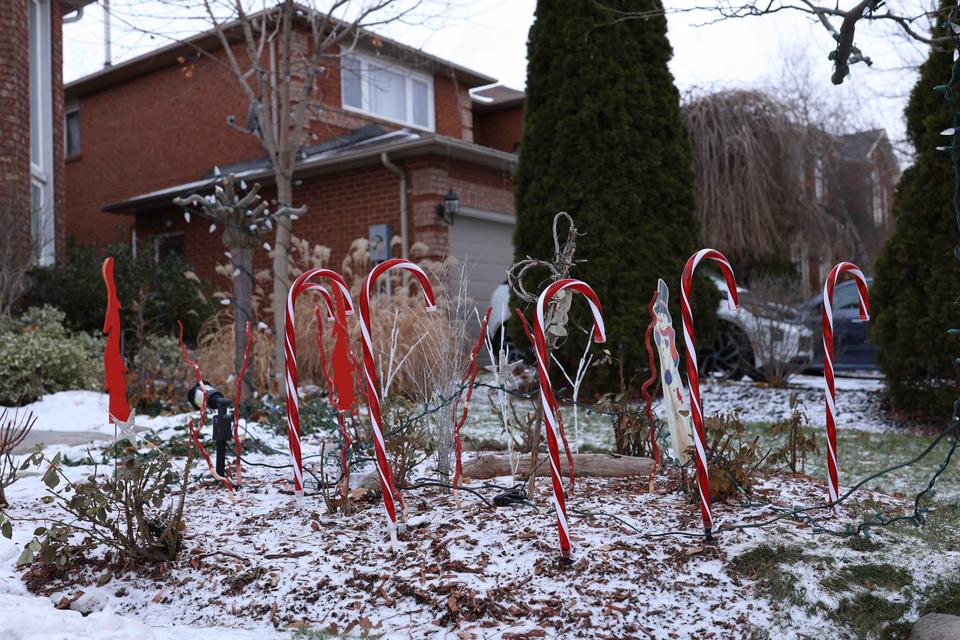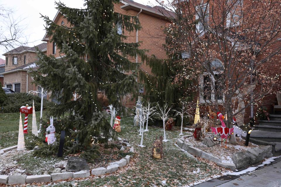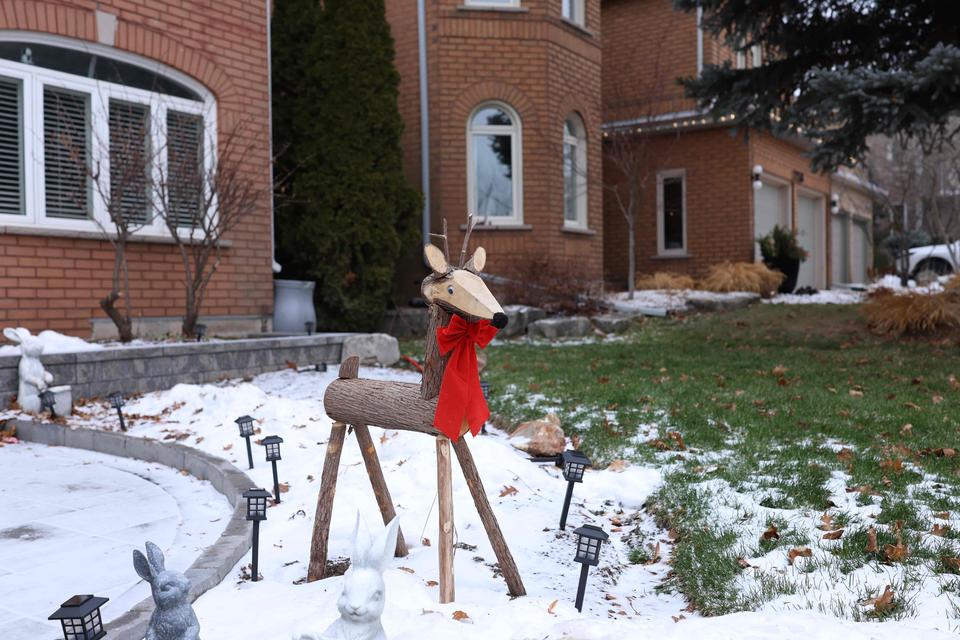 今天的多伦多,没有再下雪了!外面的气温大约两三度;前两天地上的雪都化得差不多了,昨天又下了一点,但没有垫住。 今天睡完午觉,我说出去走走,并拿上了相机,看能不能拍到点什么风景。我的相机镜头是个定焦,加之外面的色彩又很单一,也没指望能拍到什么特别好看的。 没走几步,就看到人家院子里的圣诞装饰物,有的像羊,有的像驯鹿,还有的插着圣诞老人的拐杖……那我就拍他们吧! 一路走着,发现差不多有一半的人户都做了装饰:有的在大门或车库顶上挂了一个绿色的松环或其他花环;有的屋里亮起了一闪一闪的灯串;也有几户人家已经把门口的树上挂满了彩灯,并且已经点亮。还有充气的圣诞老人! 看来老外对圣诞节还是挺重视的,就像咱们过春节一样,也会把家里收拾一番,门口贴上对联,挂上灯笼。也许是老外们居住的地方,大多比较冷,冬天外出也不方便,猫在家里没事干,于是在圣诞节还没到来之前,提前一个月左右,就开始把屋里、院子里布置得温馨一些。 东方的春节,主要集中在大年三十前10天左右,人们开始赶场,买年货,炸酥肉、做酥糖、煮醪糟……,打工的陆陆续续回老家,路上开始拥堵、热闹起来!正月十五以前更是一阵热闹,走亲戚、舞龙灯、放鞭炮,要比西方圣诞节的气氛浓烈的多! 拍了这些门口的装饰物,又到树林里的小路走了走,薄冰上盖着瓜皮雪,还有点滑,松树总是少不了的;遇到了一对母女遛着一对小黑狗,她们让我上前,还遇到一个女子独自迎面走来,她的鞋子好像是防滑的,走的还很快! 这里的圣诞节就要来了!