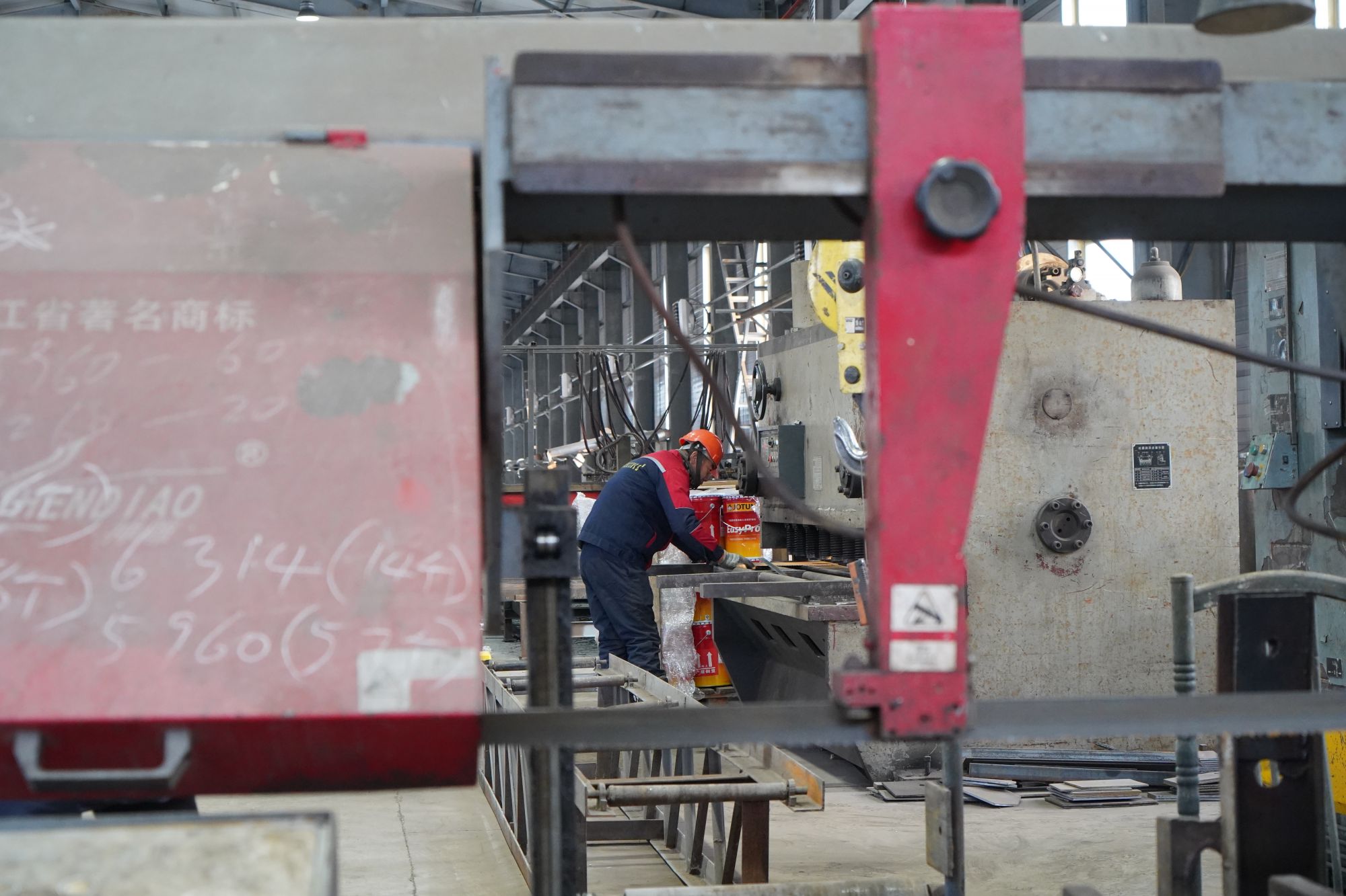 12月8日,在俄罗斯犹太自治州首府比罗比詹市,一家从事钢结构材料生产的中资企业的员工正在工作。新华社记者刘恺摄