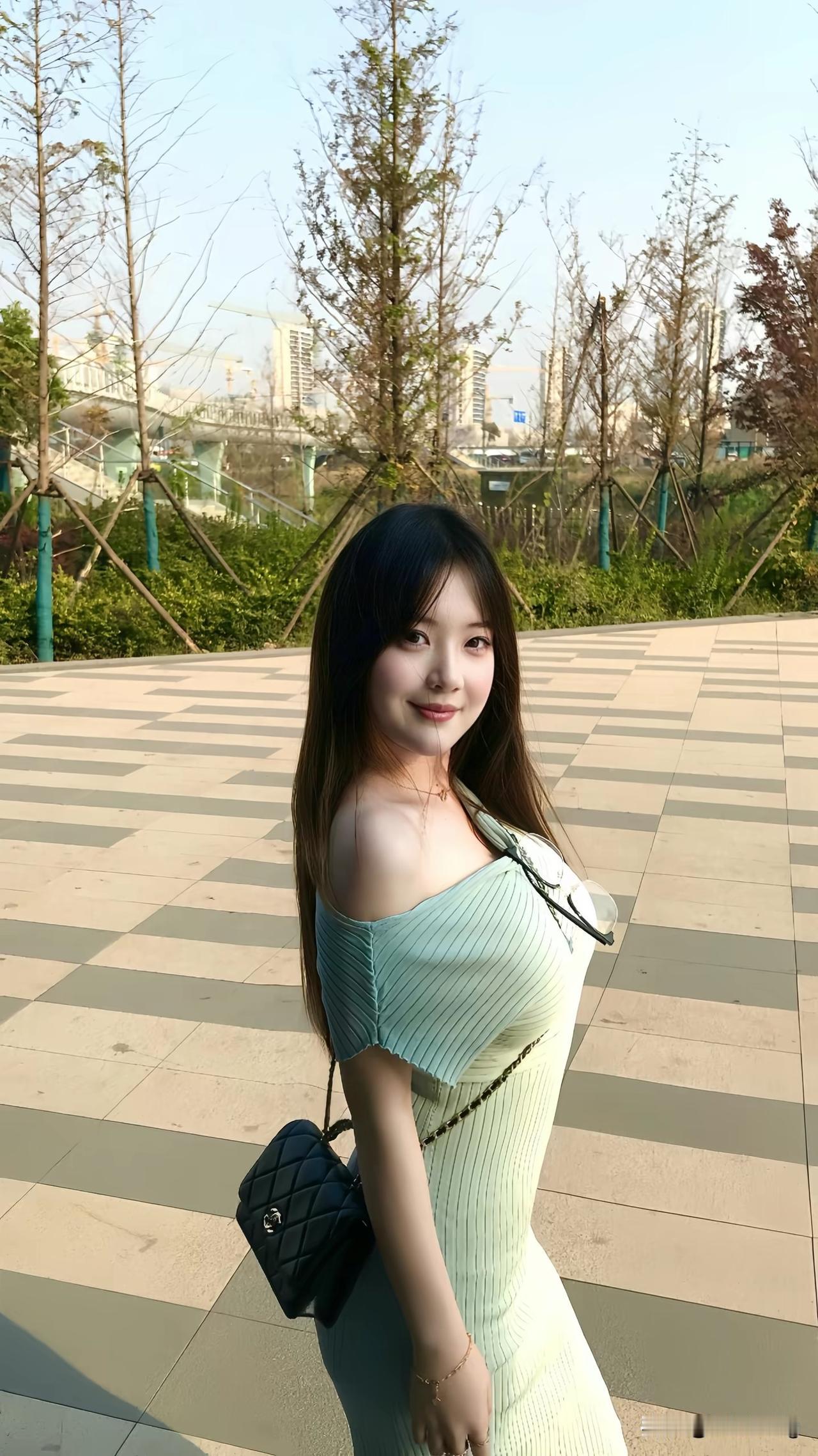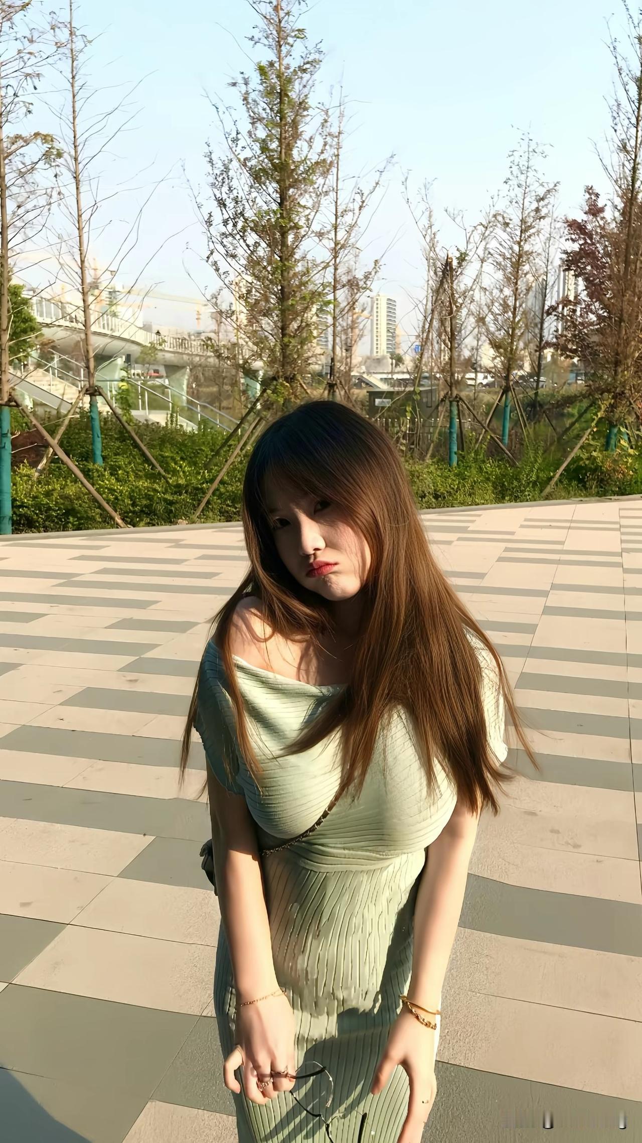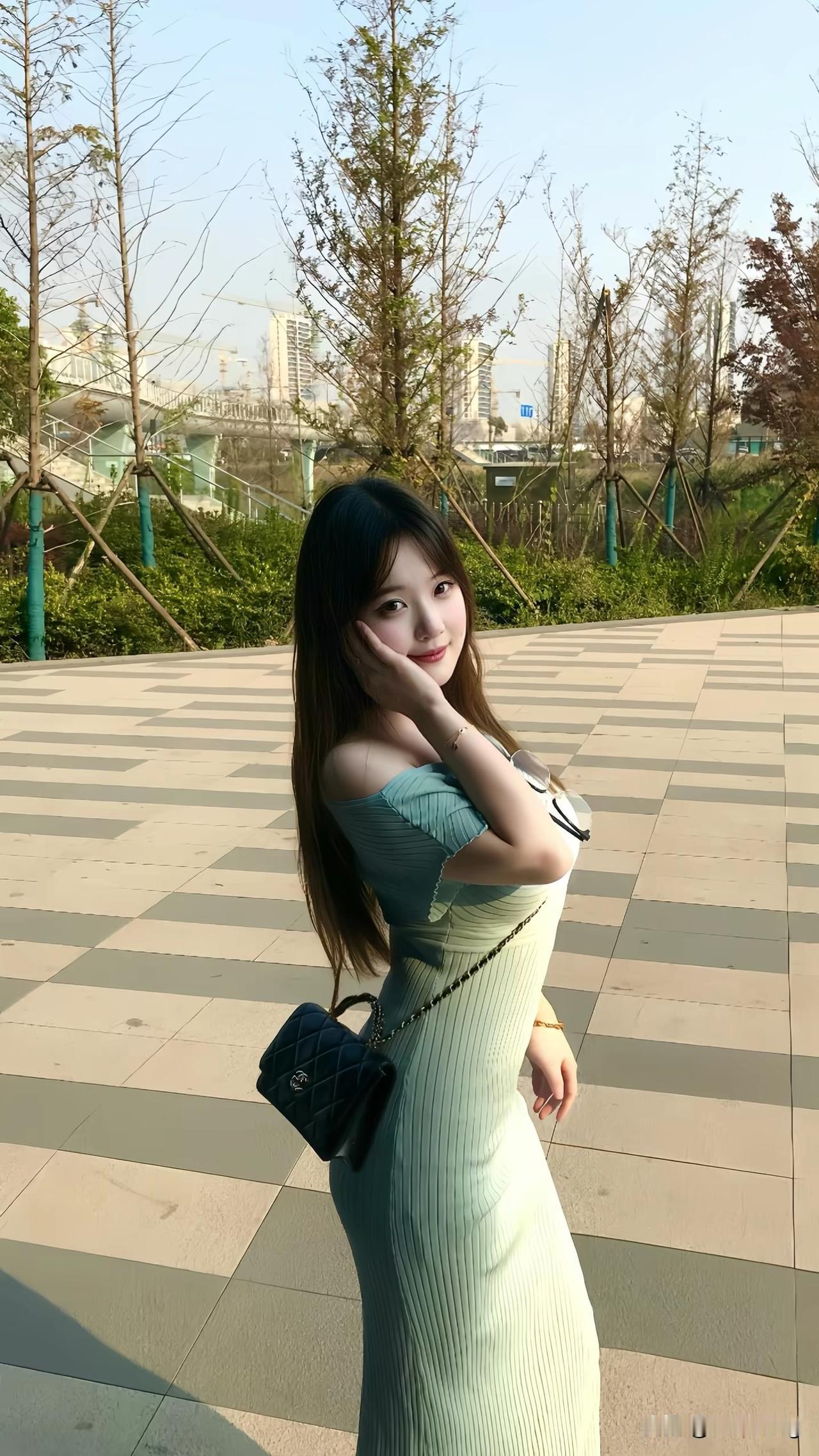 浅绿裙装赴一场春日之约,阳光正好,心情也正好✨
