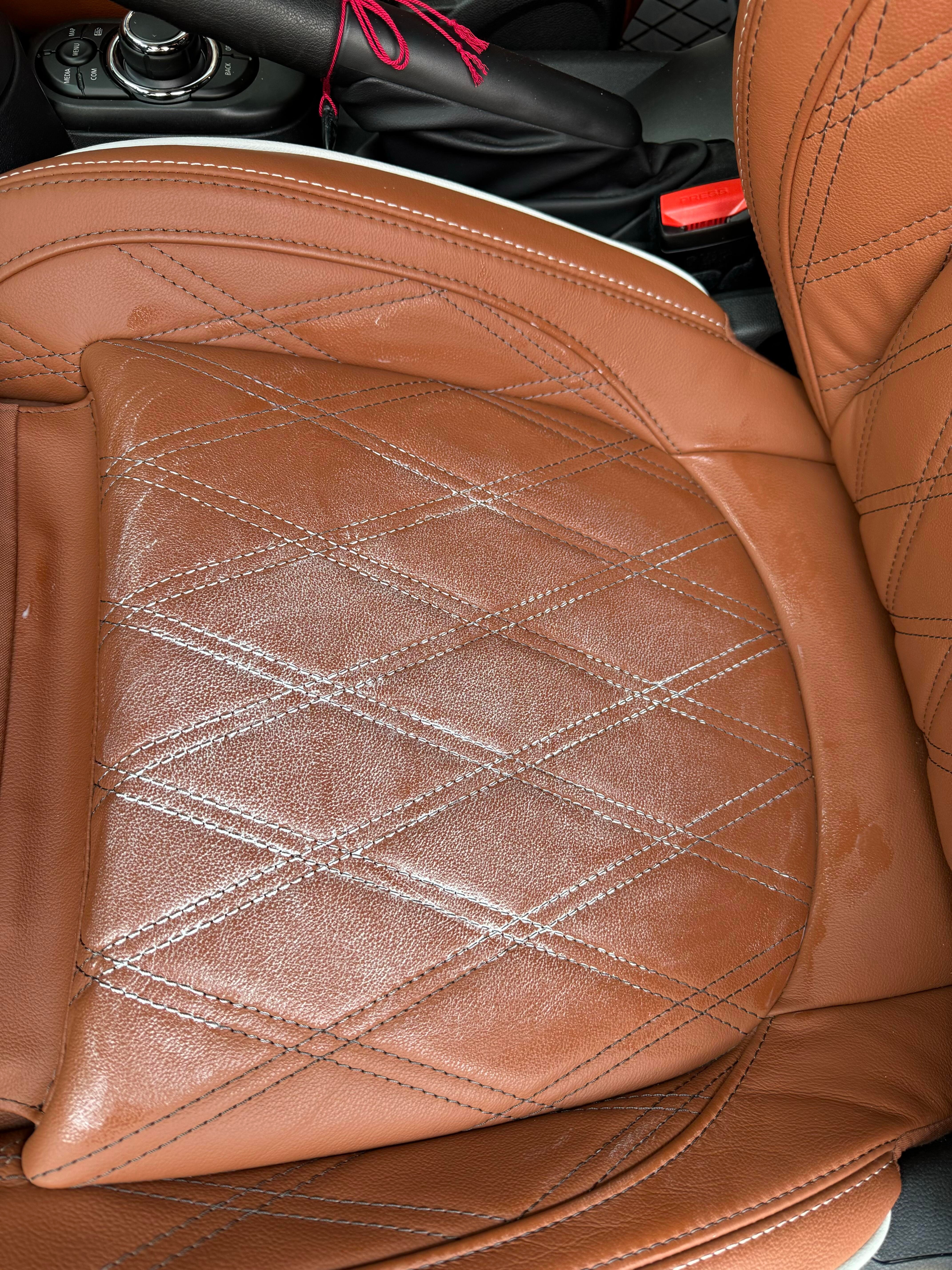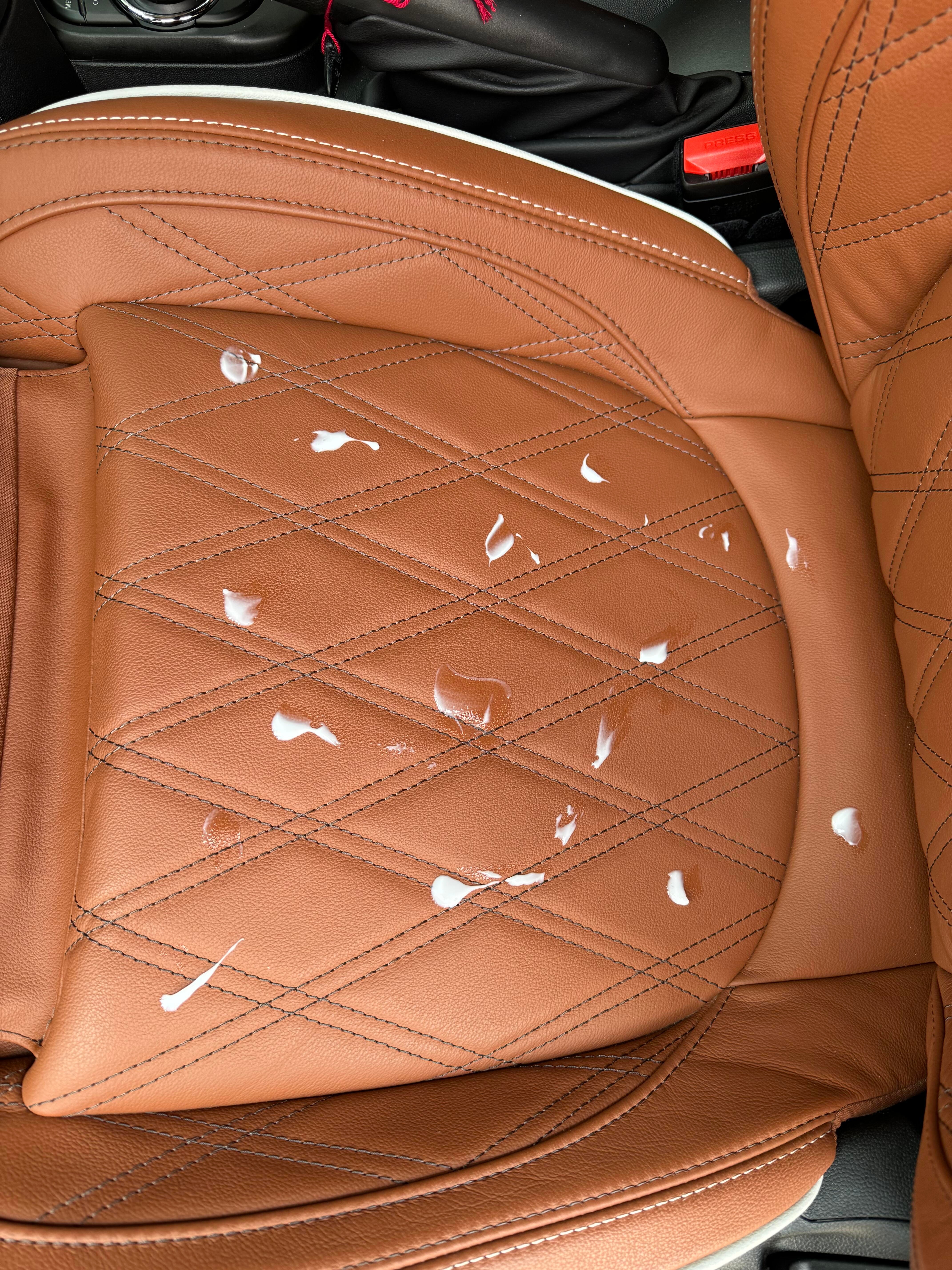 小车开了几年座椅皮子变的干涩,用大宝做了个保养,首图是刚涂完看着颜色深比较亮,过两天完全吸收后皮子正常的颜色质感就恢复了,图5是最终效果,干涩泛白感消失,不黏腻不假亮,手感非常舒服滑溜溜,我甚至感觉比提车时还好