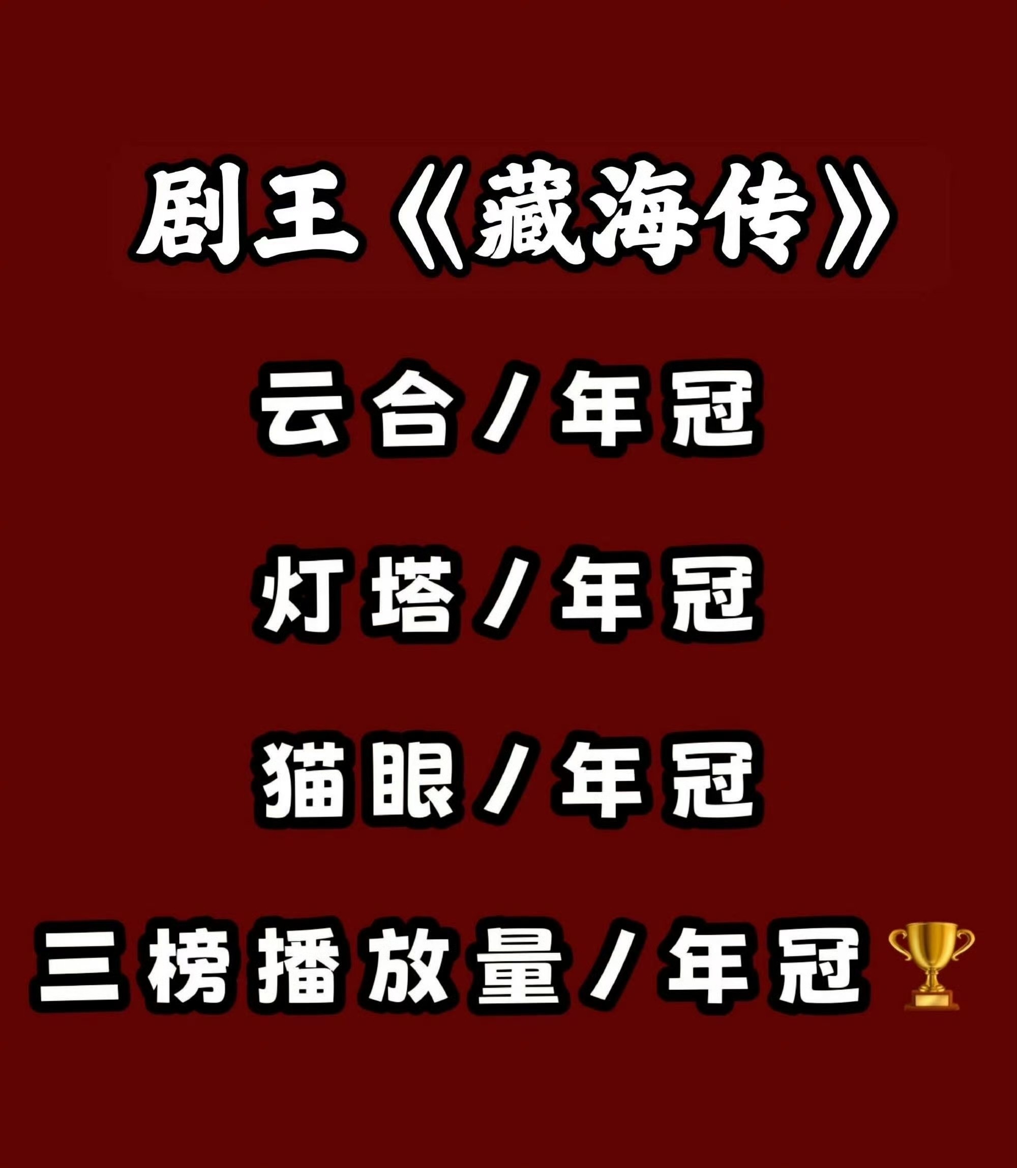 藏海传三榜播放量年冠堂堂正正, 直接总榜单截图,而不是粉圈自制小表格!权威! 肖战藏海传可以确定云合年冠吗
