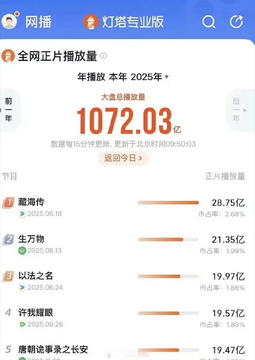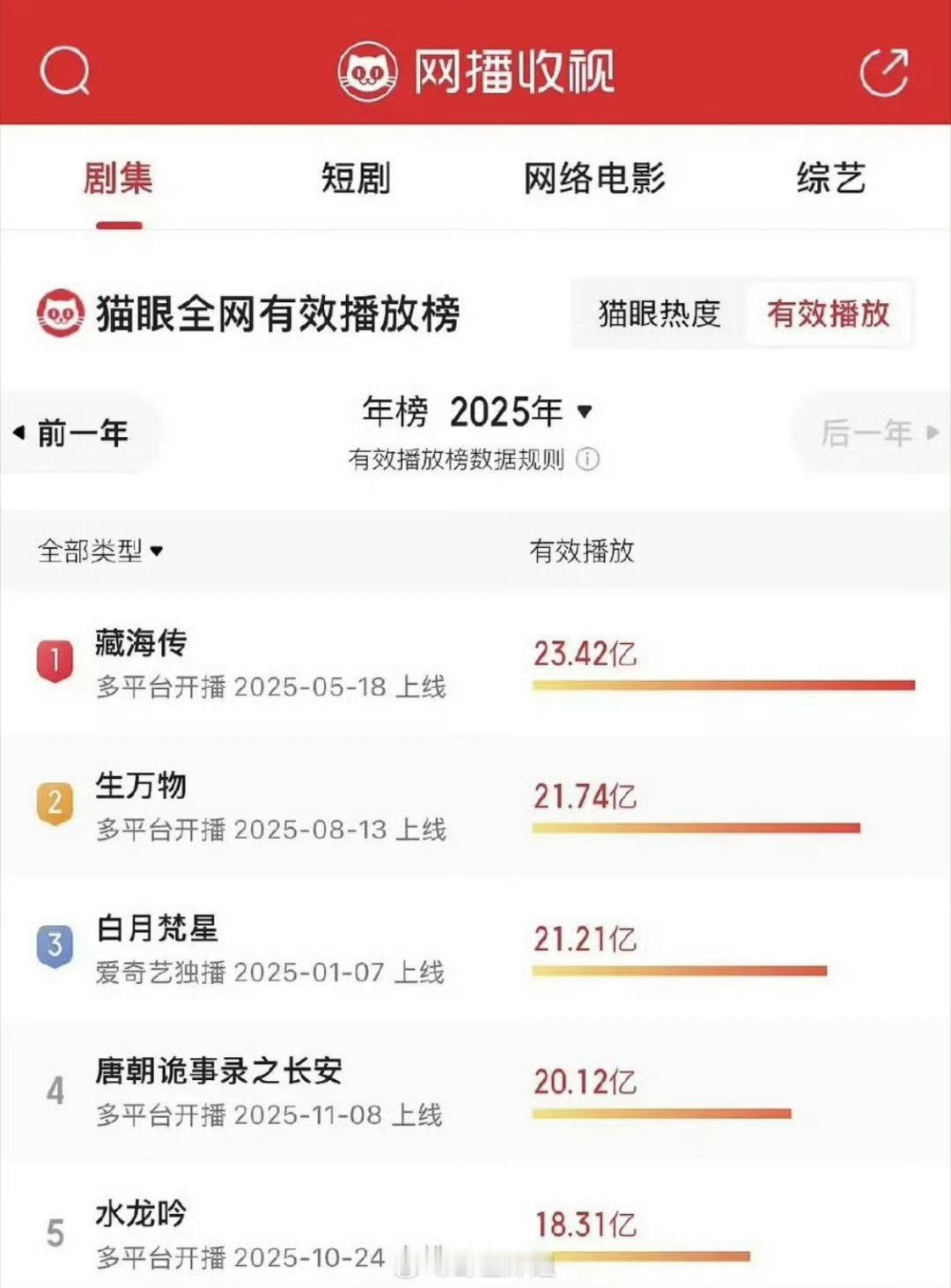 藏海传三榜播放量年冠堂堂正正, 直接总榜单截图,而不是粉圈自制小表格!权威! 肖