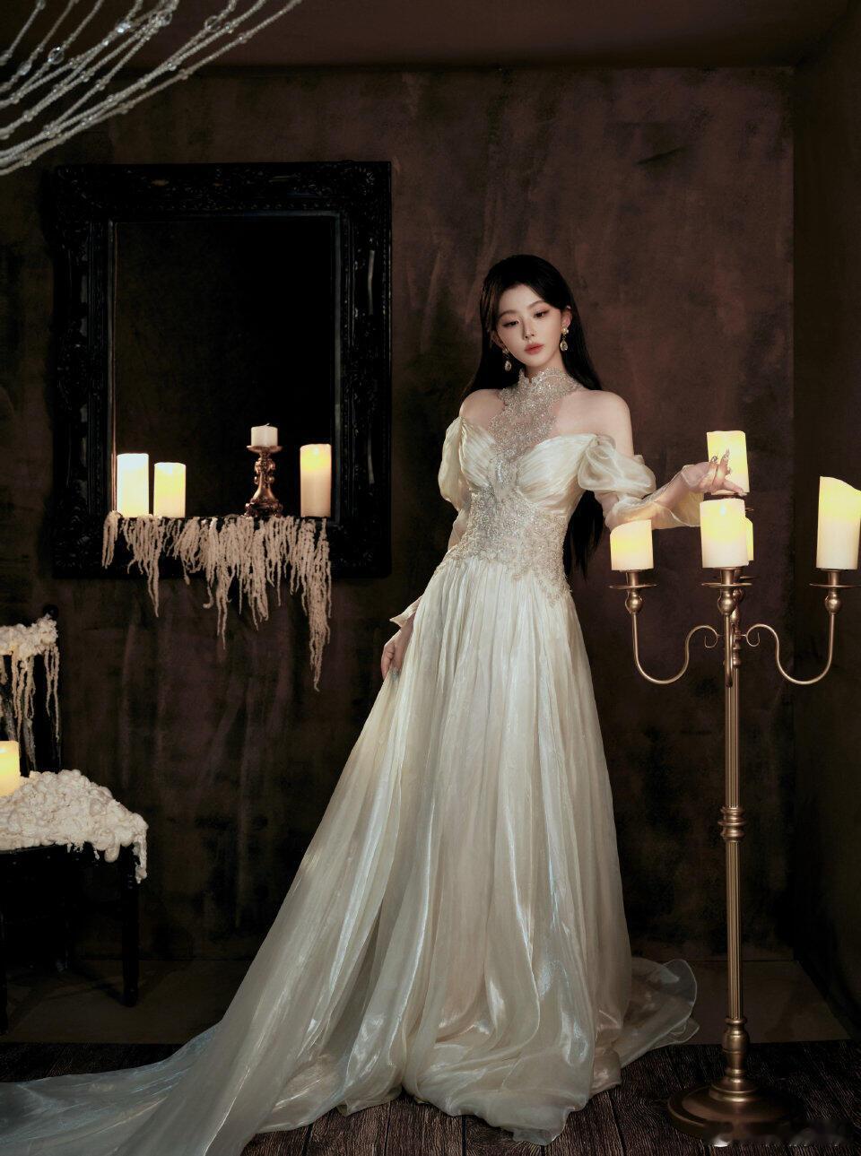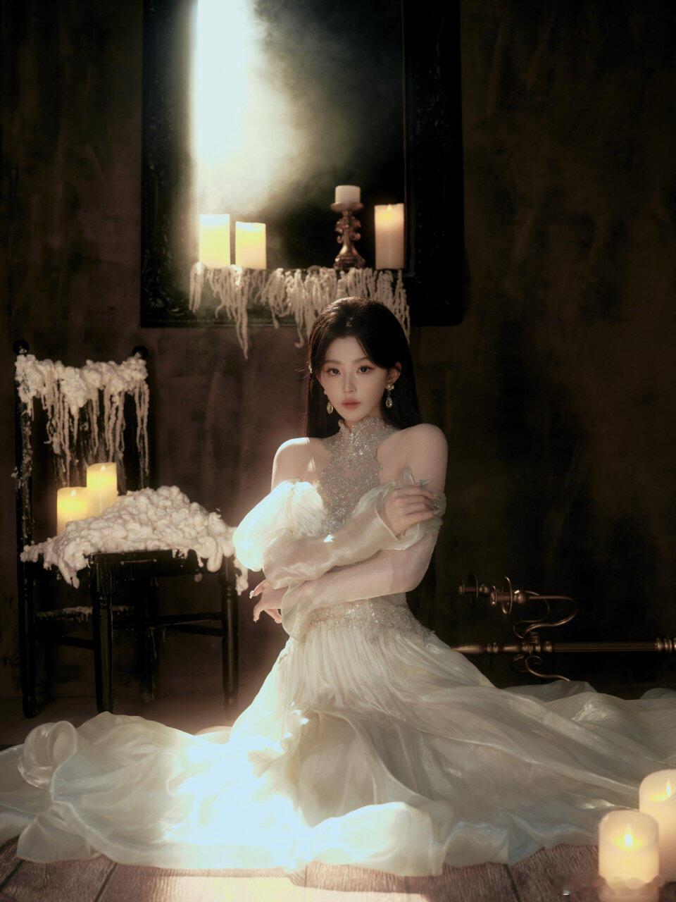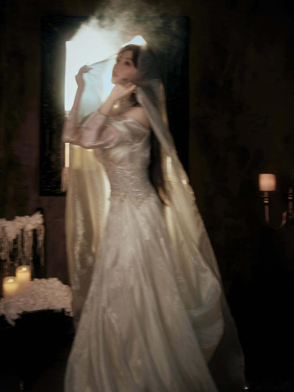 孔雪儿古堡的光吻过白纱公主的轮廓,钻裙贴出的柔软曲线,让童话里的惊艳照进了现实