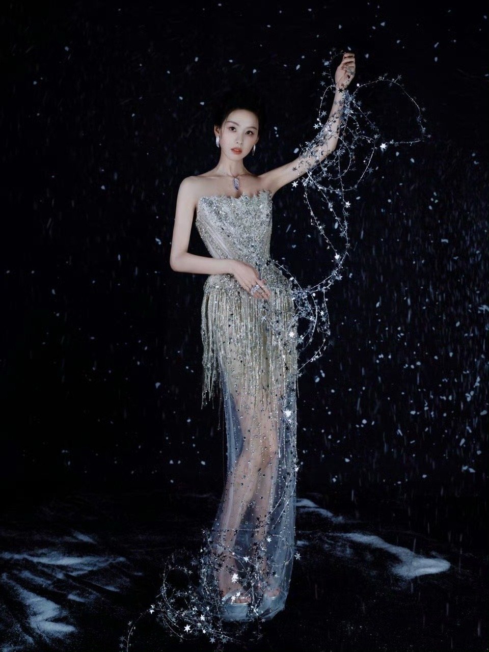 陈都灵把银河穿身上 陈都灵的美商一直在线!她太懂得如何用造型放大自己的气质优势。这套“银河裙”完美衬托了她纤长的脖颈和漂亮的锁骨,让她在璀璨中不失轻盈,在华丽中保有仙气。