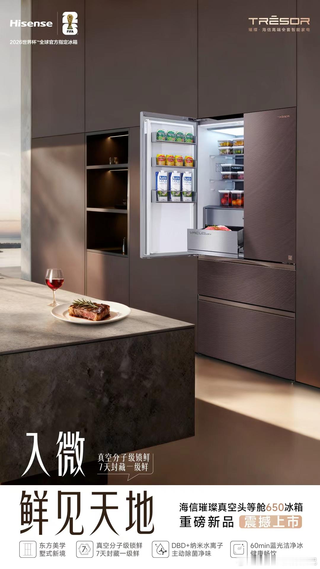 海信世界杯定制产品亮相谁懂啊!线上观赛的仪式感根本藏不住!想要看清球员每一个控球细节,渴望进球时的呐喊有临场回响,更少不了冰镇啤酒配鲜切卤味的快乐。海信早就把球迷心思摸得透透的——116英寸巨幕+4K 170Hz高刷,让攻防瞬间丝滑呈现,仿佛坐在球场前排 ;真空保鲜冰箱守住零食生鲜本味,深夜看球随时能炫一口新鲜 ;新风空调智能避人吹,多人狂欢也能保持清爽体感 。从画质到氛围,从味蕾到体感,这套定制全阵容精准戳中观赛需求,原来在家看球也能这么有排面!