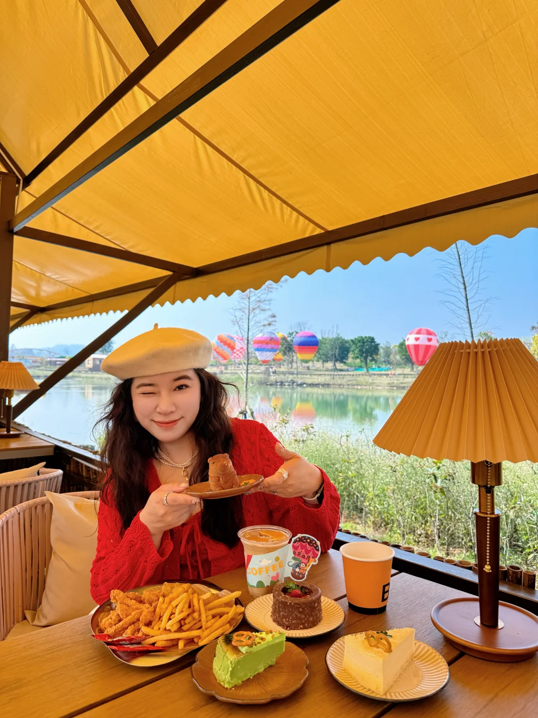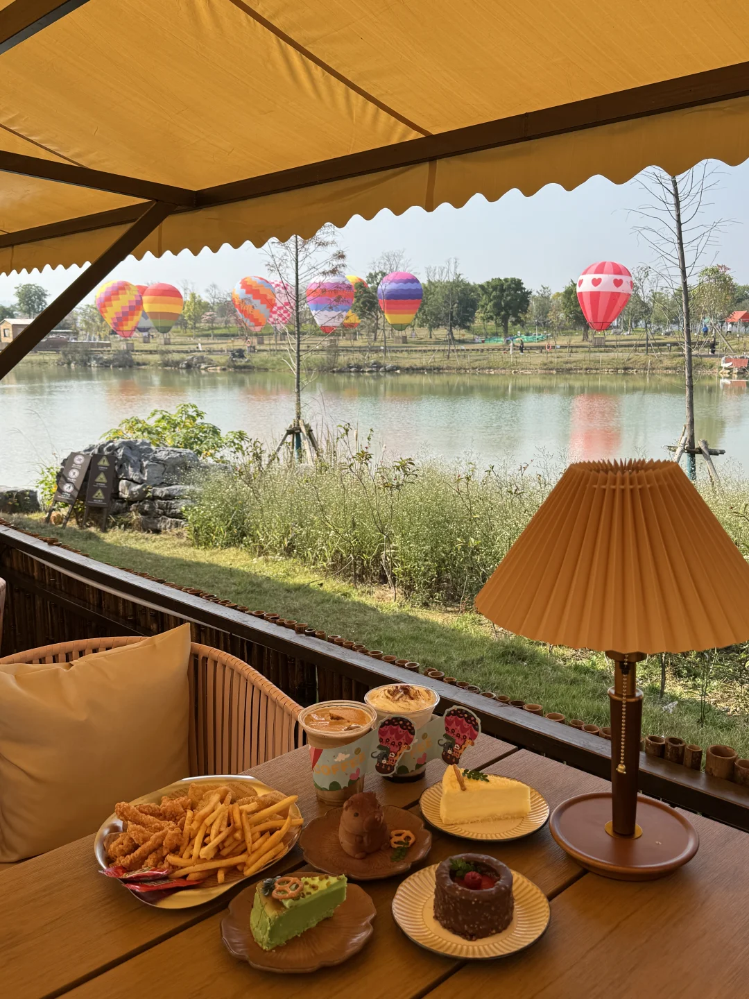 柳州的雪景我也是拍上了 热气球旁边的咖啡厅也很不错! 还有可爱的小蛋糕和下午茶小食🍗!