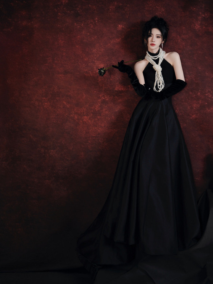 鞠婧祎珠光摇曳点亮暗夜 鞠婧祎珍珠项链丝绒小黑裙 鞠婧祎珍珠项链丝绒小黑裙,鞠婧