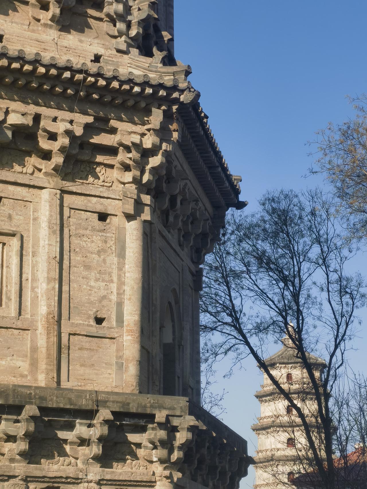 涿州双塔乃涿州古城标志性建筑,由南塔智度寺塔与北塔云居寺塔构成。南塔建于1031年,高44米;北塔建于1092年,高55.69米,二者相距约260米。 两座塔均为仿木构阁楼式砖塔,具鲜明辽代特征。南塔筑于一米高砖台,塔座与塔身砖雕精美,斗拱层叠,塔角铁铃遇风作响。北塔以偶数层佛塔称奇。古时可登高望远,可见涿州为军事要塞。2001年,双塔成全国重点文物保护单位,见证岁月变迁。