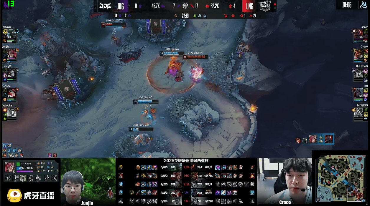 LNG上头操作JDG反打成功,随后比赛因BuLLDoG设备问题暂停