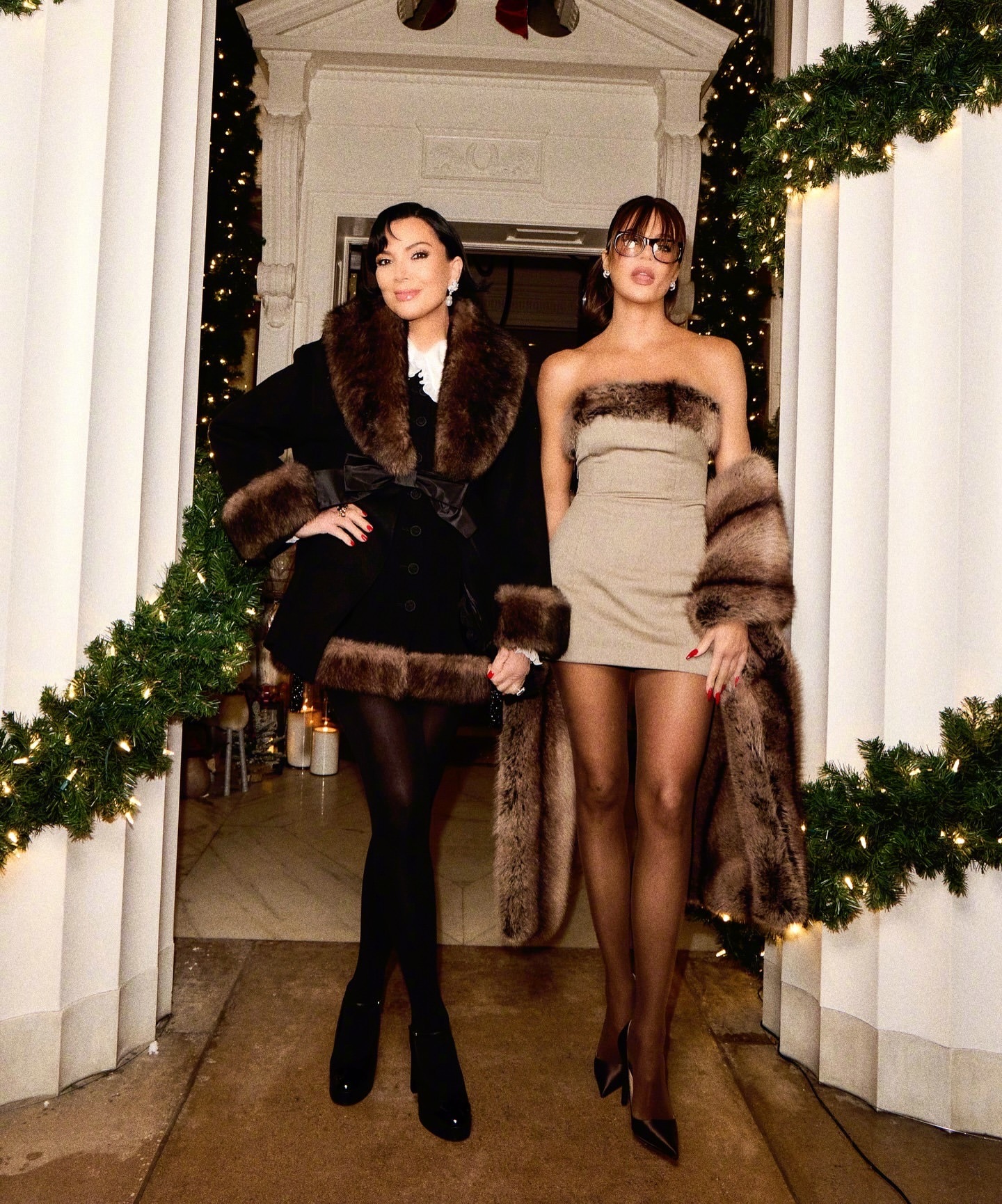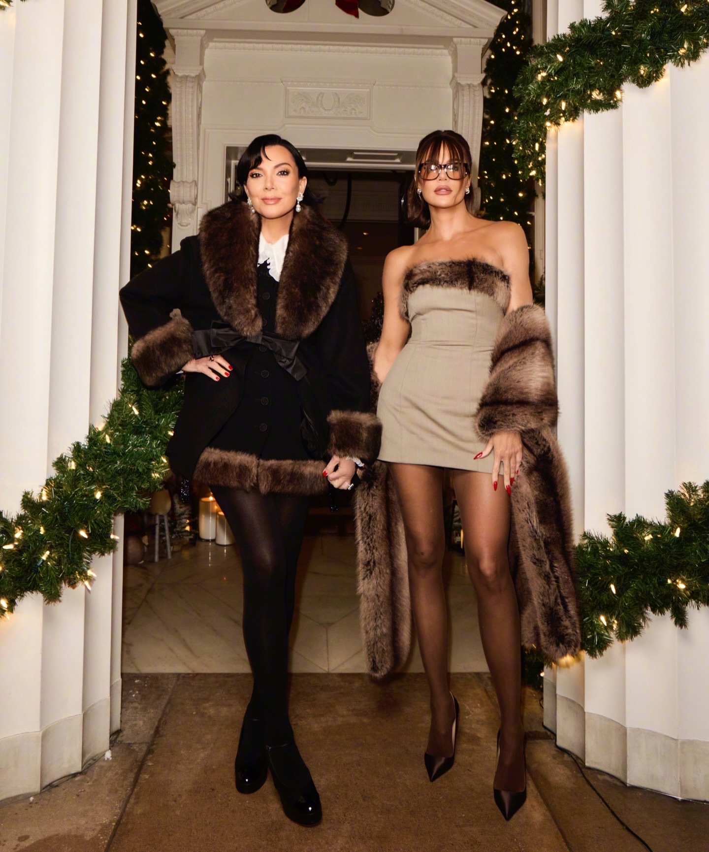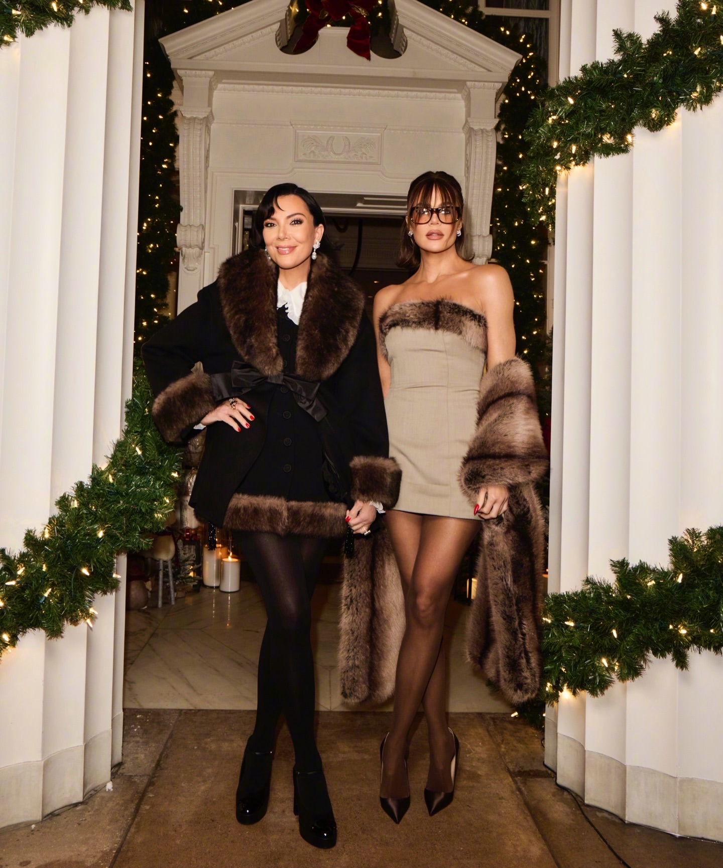 太后Kris 分享与好友劳伦桑切斯及女儿科勒的圣诞写真。太后身穿 valentino,佩戴卡地亚珠宝。太后的造型这直接碾压了女儿!