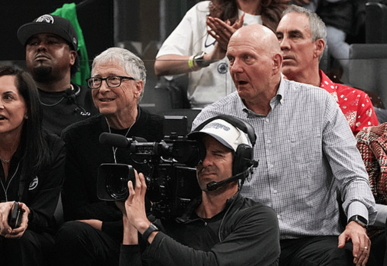 ”比尔-盖茨与史蒂夫-鲍尔默一同出现在快船对阵湖人比赛的场边座位。带他来看这场重要比赛非常合适。“