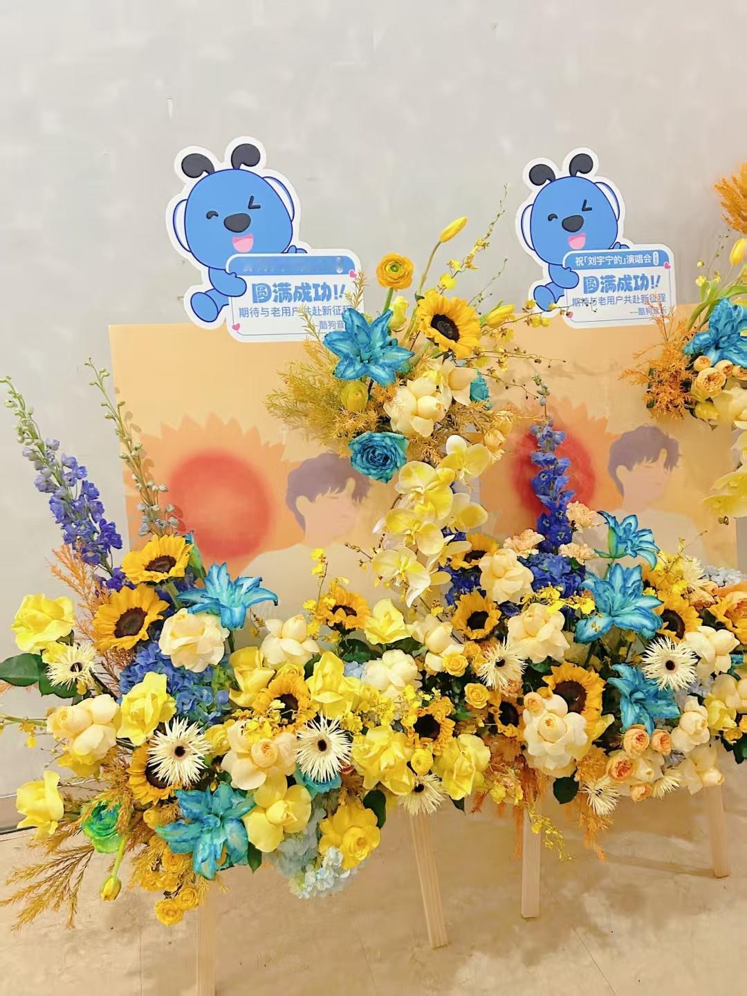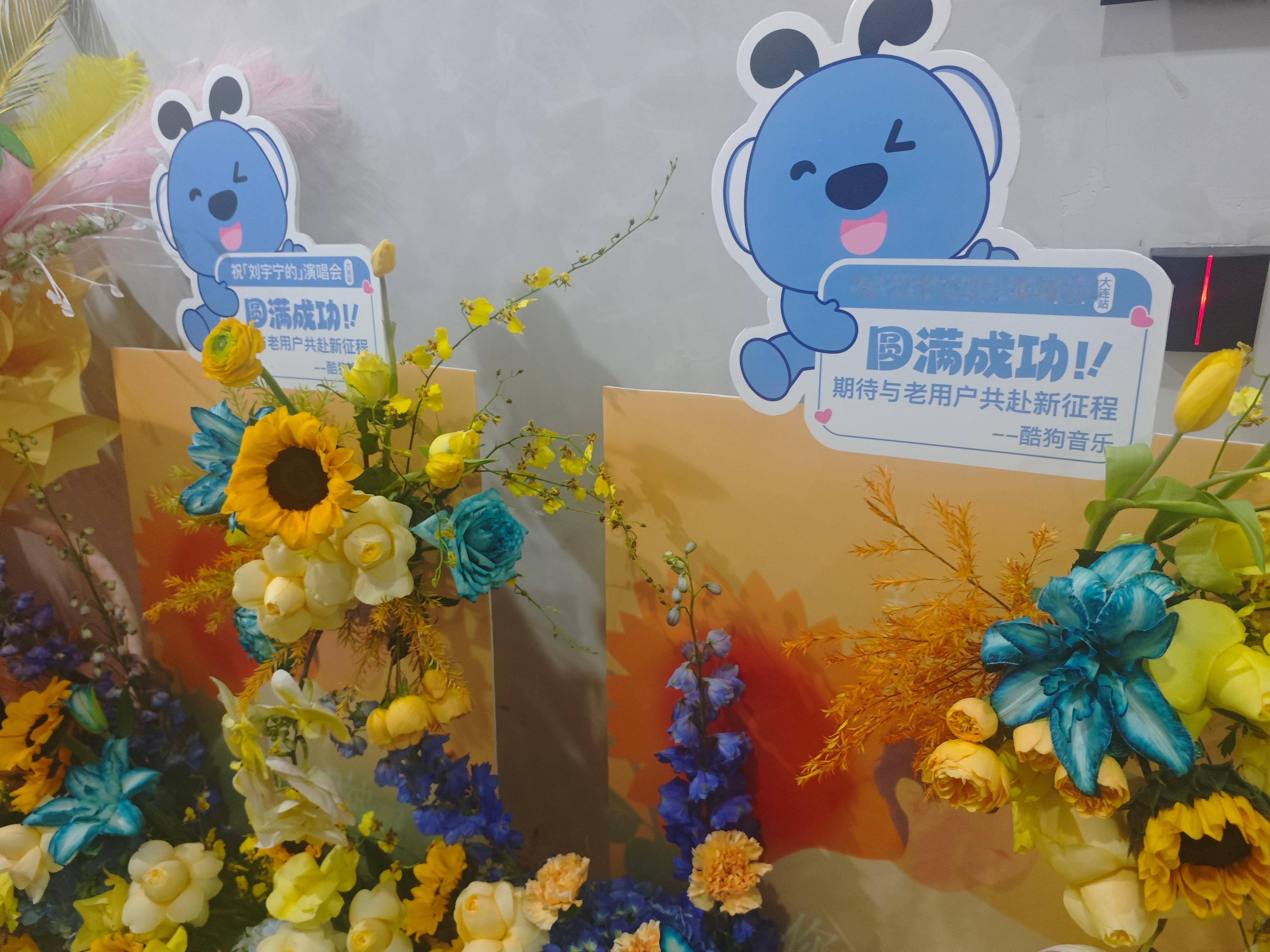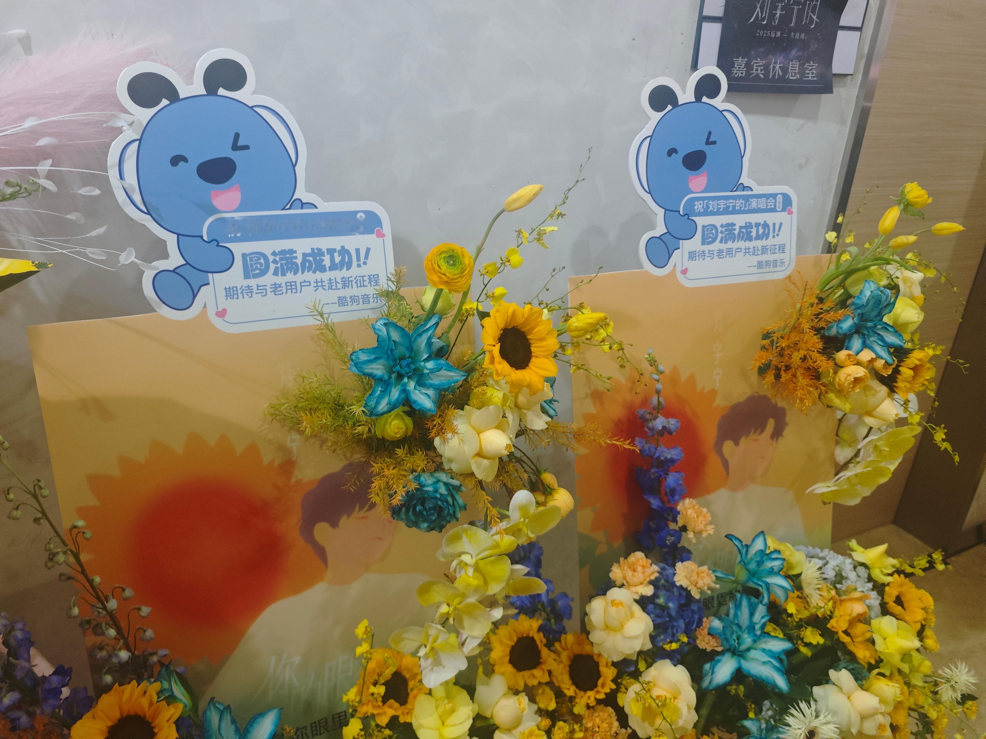 刘宇宁圈内人脉好好啊,演唱会后台好多明星和品牌送了花篮,晒的图里面甚至看到了酷狗