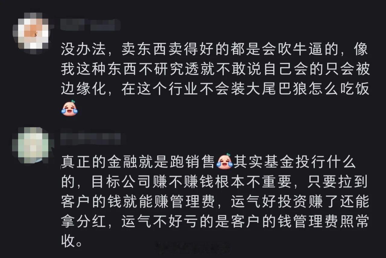 金融人和糖葫芦的十大共同点1、套了层 “高端外衣”,底层还是山楂2、甜是给人看的,酸是自己咽的3、糖浆熬糊三锅才出师,报告改烂五版才过关4、路边摊 vs 专柜 = 私募 vs 公募,身价看渠道5、靠的是看天吃饭的周期性资产6、越火越涨价,主打 “趁热度收割”7、最怕 jian 管,要么罚款要么摊子没了8、做的事都是把一堆廉价原材料打包美化,装进一个光鲜亮丽的壳然后卖高价9、入行的第一步就是变的没有心10、都是熬出来的