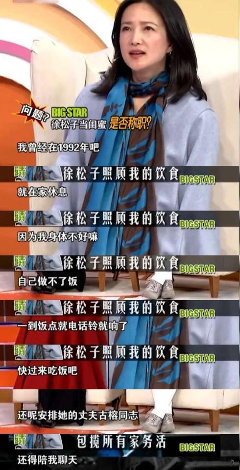 何晴说:“1992年的时候,我身体不好,就在家里休息,我也做不了饭,一到饭点的时候,我的闺蜜徐松子就会给我打电话,说过来吃饭吧!她做饭特别好吃,到了她家,她已经把碗和筷子都摆好,还会叫老公古榕陪我聊天,她就去厨房做饭炒菜,等我们吃完了饭,她就收拾洗碗,然后去遛狗,叫我们继续聊。” 何晴在圈内有几个非常好的女性朋友,大家都对彼此掏心掏肺,何晴对黄绮珊也非常好,一直鼓励她唱歌,还劝她千万不要整容,说唱歌时的她,就是世界上最美的女人。