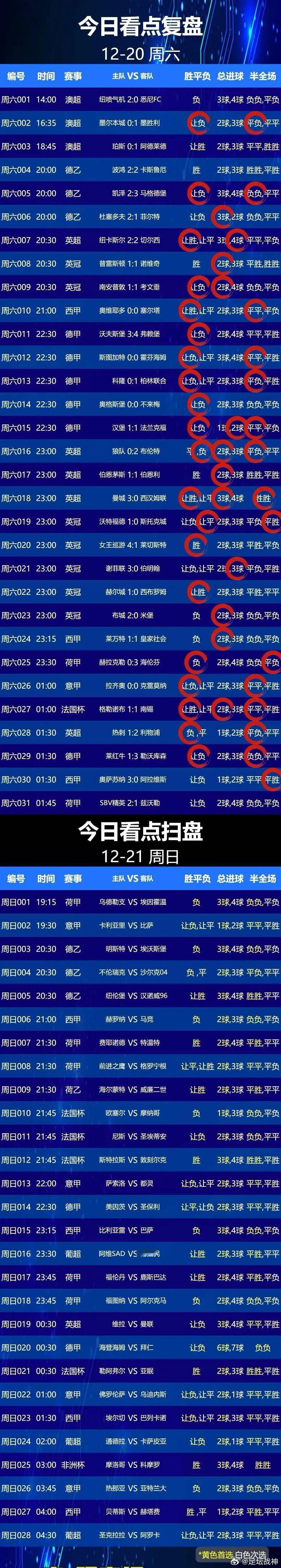 12月21日001 乌德勒支 VS 埃因霍温 002 卡利亚里VS 比萨003 普鲁士明斯特 VS 埃弗斯堡004 布伦特福德 VS 沙尔克04005 纽伦堡 VS 汉诺威96