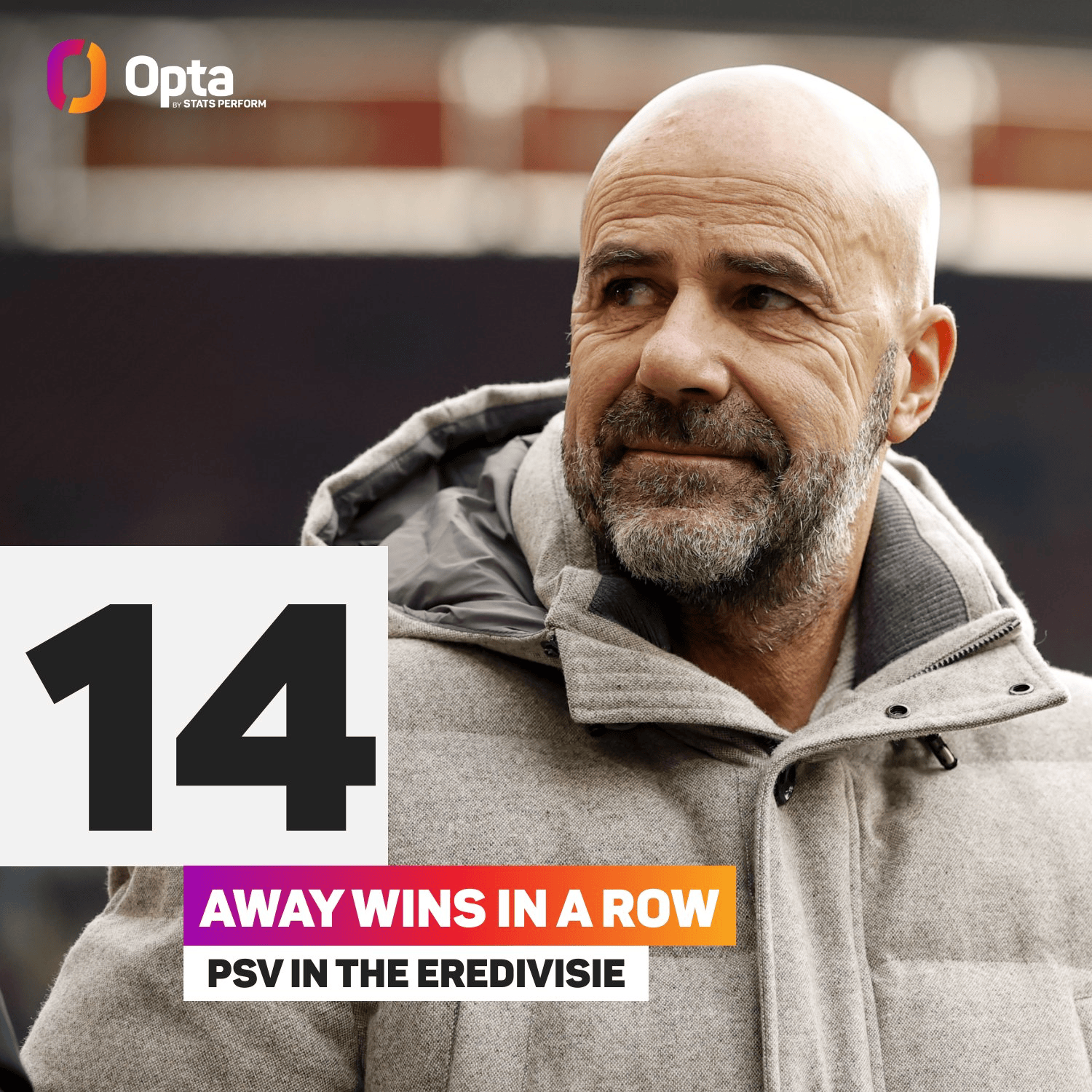 他们也成为了荷甲历史上第一支能够取得客场14连胜的球队。