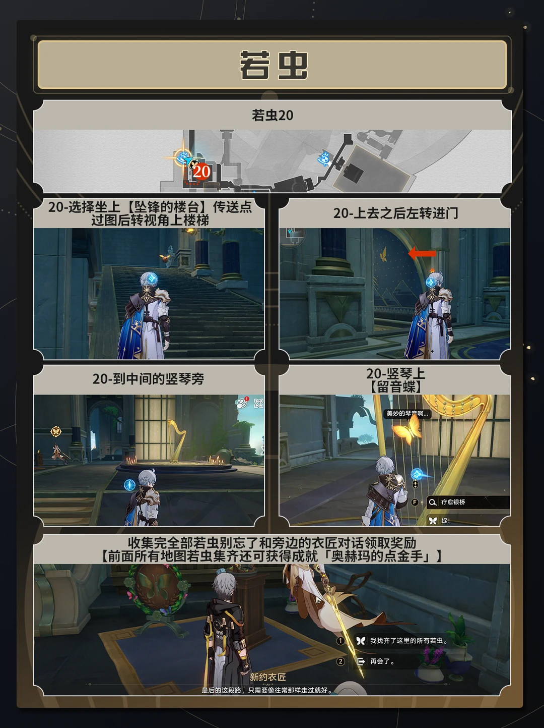 收集完全部若虫别忘了和旁边的衣匠对话领取奖励【前面所有地图若虫集齐还可获得成就「奥赫玛的点金手」】