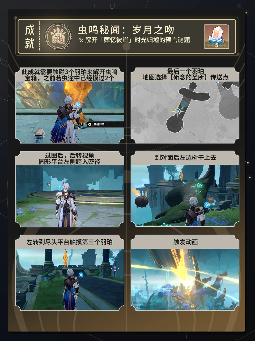 解锁虫鸣宝箱,选择上方传送点【神话的罅隙】,过图后左转。开启虫鸣宝箱,获得成就