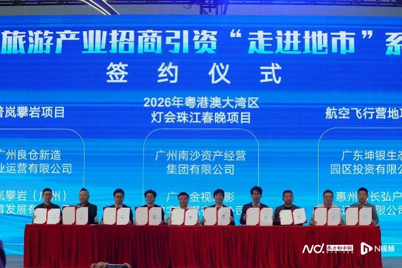 对接会上,“海丝文化创意”“智能驾驶电动游船”“广州上下九永庆坊亚朵酒店”“万人游东北”“票无忧”票务平台落户白云区“海丝影视城”“普岚攀岩”“2026年粤港澳大湾区灯会珠江春晚”“航空飞行营地”和“影视制作、文化活动策划”共10个项目达成签约合作,涵盖智慧文旅、影视文化、体育旅游等类型。
