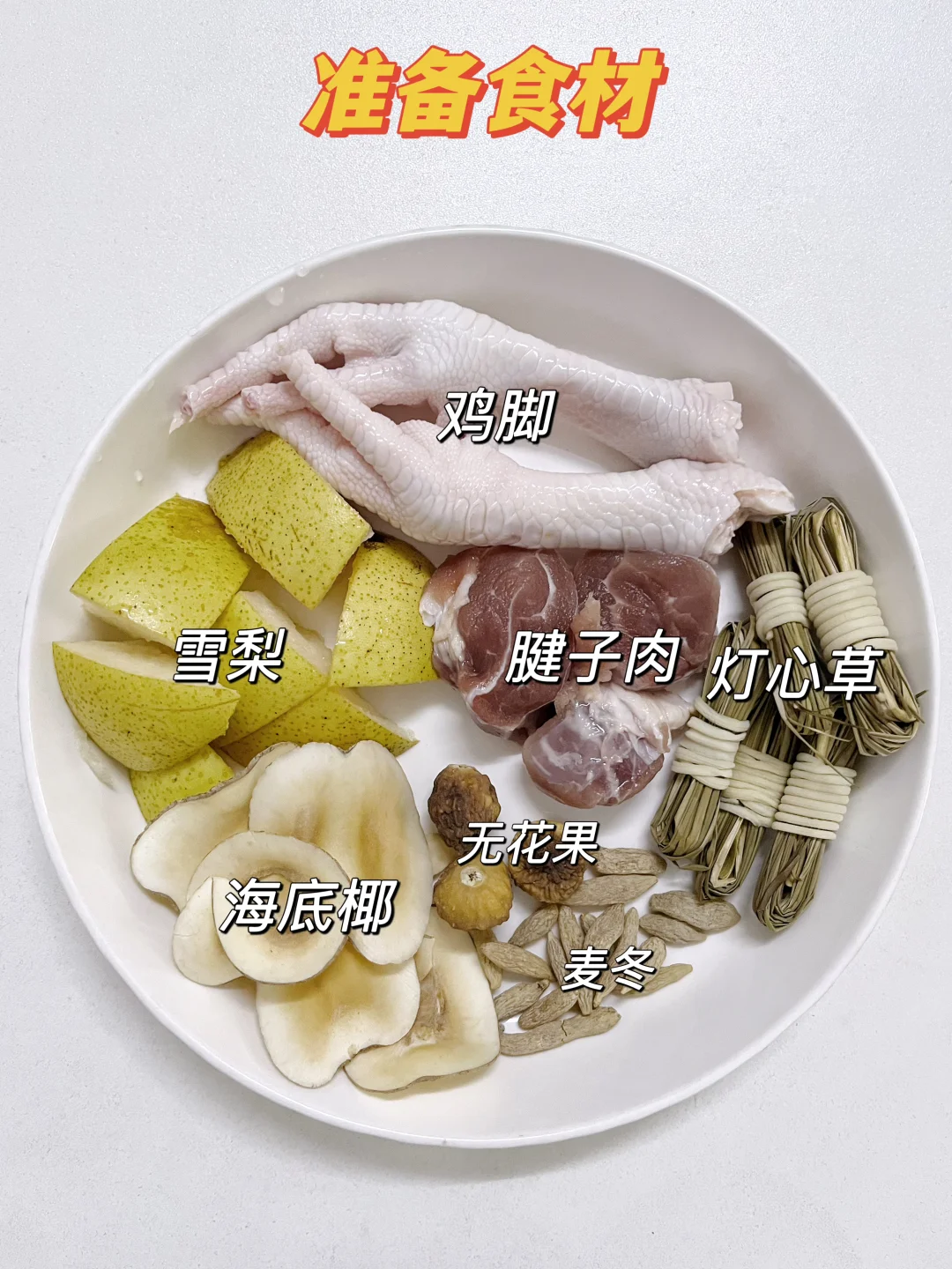 1️⃣ 雪梨用盐搓洗表面,再切块,其它食材洗净备用。