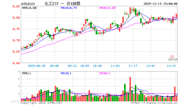 12月19日,化工ETF(516020)涨1.75%,成交额1.12亿元。当日份额减少2250.00万份,最新份额为40.52亿份,近20个交易日份额增加8100.00万份。最新资产净值计算值为32.96亿元。