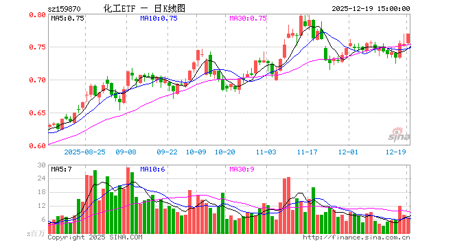 12月19日,化工ETF(159870)涨1.99%,成交额5.23亿元。当日份额增加3.54亿份,最新份额为206.54亿份,近20个交易日份额减少23.27亿份。最新资产净值计算值为158.25亿元。