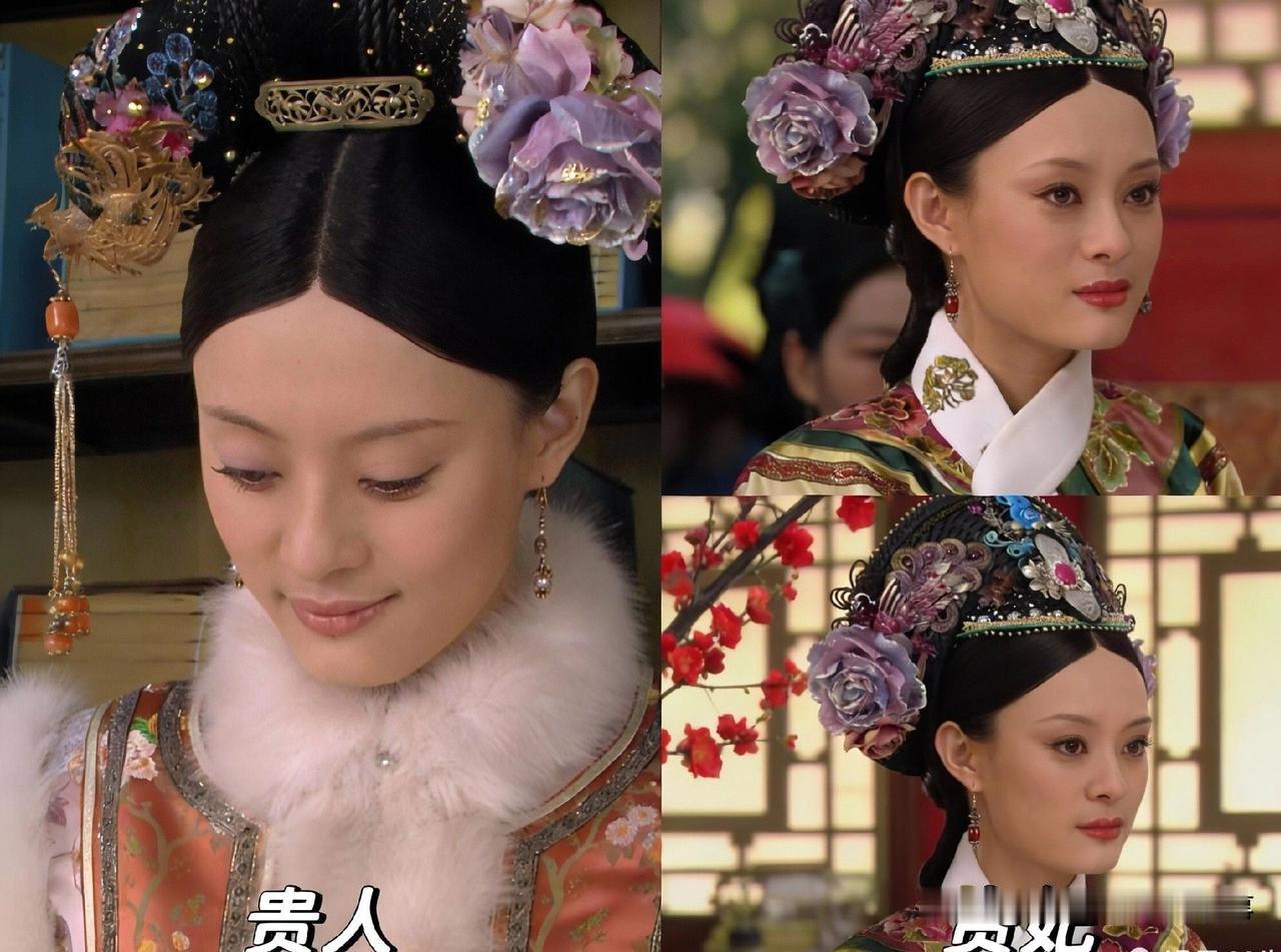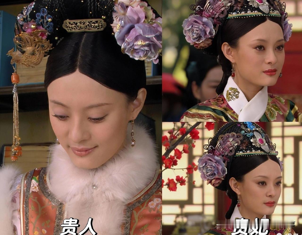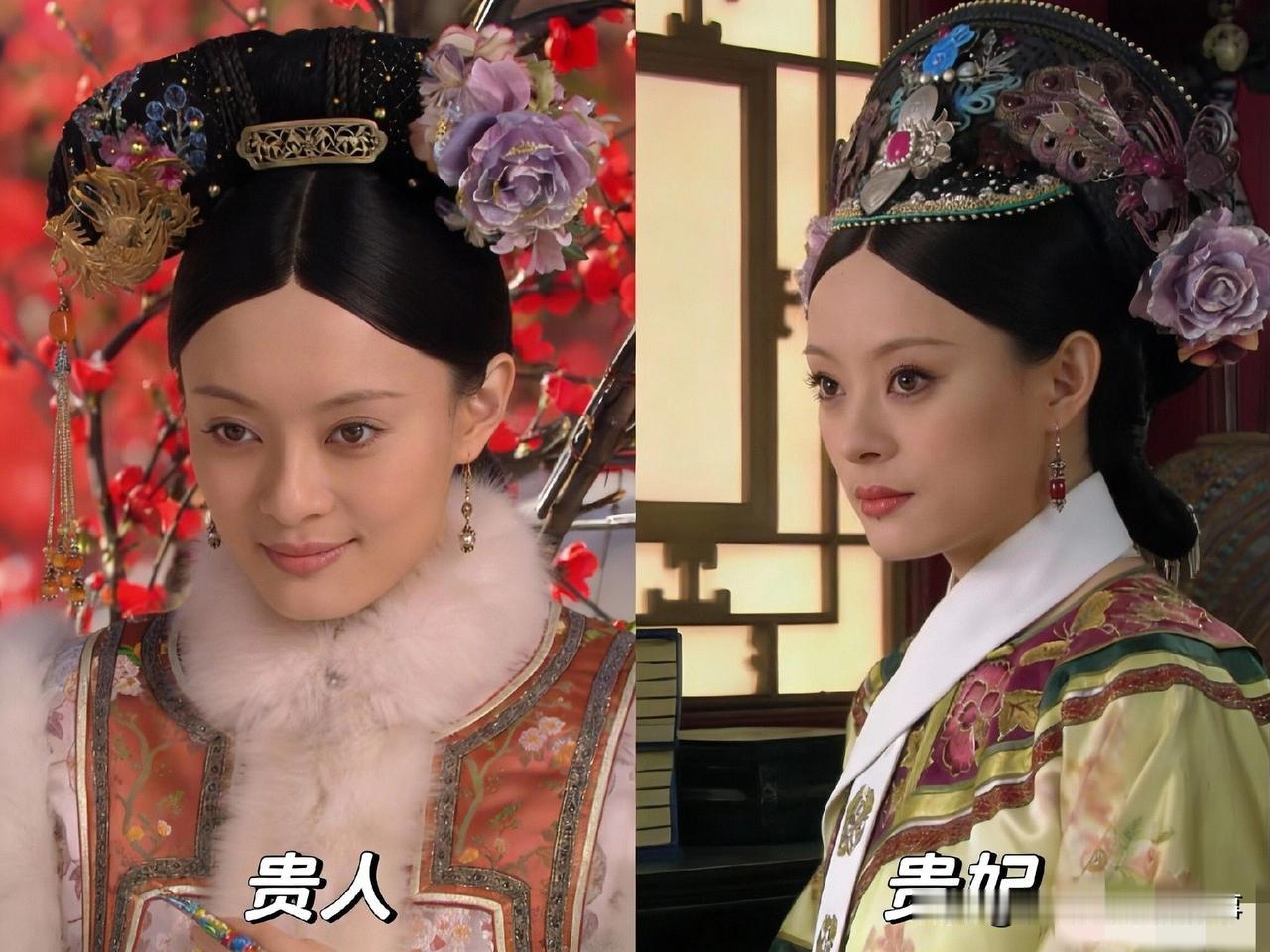 重温发现嬛嬛从莞贵人到熹贵妃,居然把一朵紫色绢花戴了这么多年!前期莞贵人头上单支紫花清丽可人,衬得她眉眼如画;后期熹贵妃直接把紫花“量产”成一对儿,配着钿子反而显得脑袋有点大。 而且贵妃的钿子看着华丽,压根没什么金饰点翠的贵重物件,难怪太后都吐槽她身居妃位还打扮得这么素净! 其实细想就懂,嬛嬛回宫后对胖橘满心嫌恶,根本没心思打扮取悦他,妆造意思意思就得了~也有小伙伴吐槽,对比《如懿传》的服道化,《甄嬛传》的大拉翅确实少了点华贵之气,连衣服都没怎么换,多少有点小遗憾! 所以问题来了, 你觉得嬛嬛后期的“朴素妆造”是人设加分项,还是服道化的小不足?