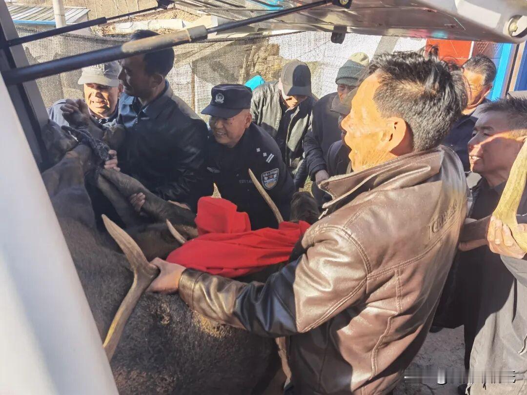 吓人!青海一村民家突然闯入“不速之客”,吹管麻醉瞬间化险为夷! 最近,互助县东和乡一村民家中,一只体型壮硕的马鹿,不知咋的闯进了院子,困在该村民家房屋外封闭的玻璃檐廊内,噼里啪啦一通折腾,家具可遭了殃。村民吓得够呛,赶紧报警。 不一会儿,警察和野生动物保护站的人带着工具就赶到了。那马鹿正焦躁呢,乱撞乱跳,看着都让人揪心。硬来肯定不行,人马鹿也怕,人也危险。只见工作人员悄摸拿起个吹管,跟武侠片似的,“噗”一下,精准命中马鹿身上。没过多久,这大家伙就慢慢安静下来,睡着了。原来,这是用吹管麻醉法,精准实施的麻醉。 好嘛,现场大家齐上手,小心翼翼把这“不速之客”抬到了安全地方。一检查,好着呢,是国家二级保护动物,就是累虚脱了。村民这才拍拍胸口:“幸亏你们来得快,我这心都快跳出来了!” 后来,这懵懵的马鹿被送到了省里的保护中心,专人照顾着,等休养好了,就能回大自然啦。 真是虚惊一场,也幸亏处置得又专业又暖心!看来以后门窗可得关关好,保不齐哪天就有“贵客”不请自来呢! 此事在村民中引发不少议论。许多人都表示第一次见到这么大体积的野生动物闯入家中,既害怕又觉得稀奇。 这场意外虽造成一些财物损失,但用吹管麻醉替代传统驱赶或抓捕制服,成为人与野生动物冲突处置的一个脚本。 马鹿梅花鹿 青海动物