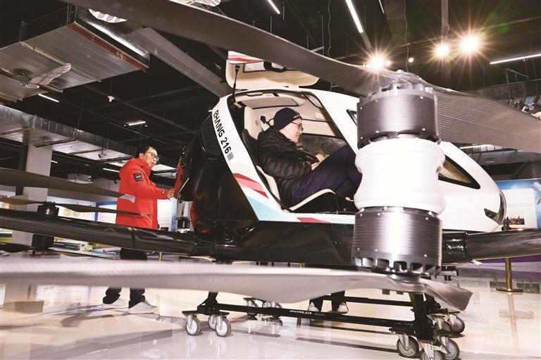 近年来,我市大力发展低空经济,以打造“陆空一体、多式联运”示范模式为目标,积极拓展无人机消费新业态、新模式,推动可推广的无人机综合应用服务模式落地。双桥区通过新建或改造专用场地、建设低空管理服务系统、科学规划空域和航线,一批低空特色应用场景正逐步成形。图为游客在承德低空经济总部基地参观体验载人无人机。