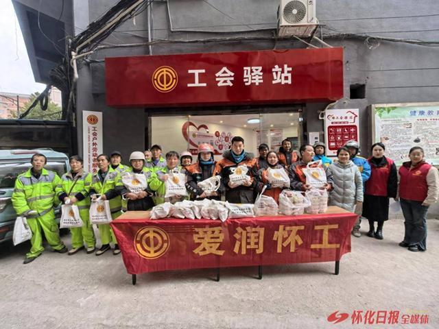 怀化日报全媒体讯12月21日冬至当天,怀化市总工会、市志愿者协会在工会驿站市总工会站开展“情暖冬至・爱润怀工”慰问活动,为28名环卫工人、外卖、跑腿骑手等一线劳动者送上热气腾腾的饺子、“暖心礼包”与节日祝福,让传统节日的温情流淌在城市服务者心间。