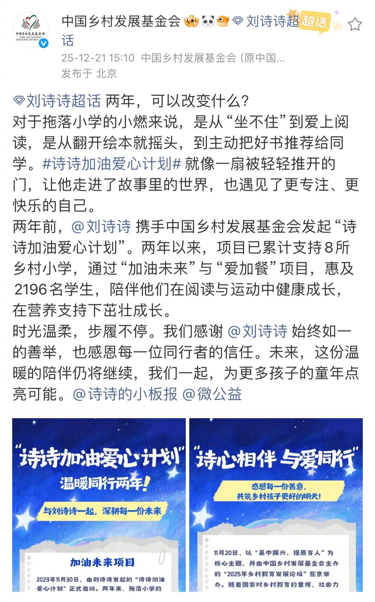 刘诗诗冬至营业已next level 昨天冬至刘诗诗虽然没自己发博,但相关的冬至物料已经是next level的程度了!一边是《醉梦》的新剧照,一边是“诗诗加油爱心计划”两周年的暖心成果展示,看完只能说:就这个刘诗诗冬至营业爽
