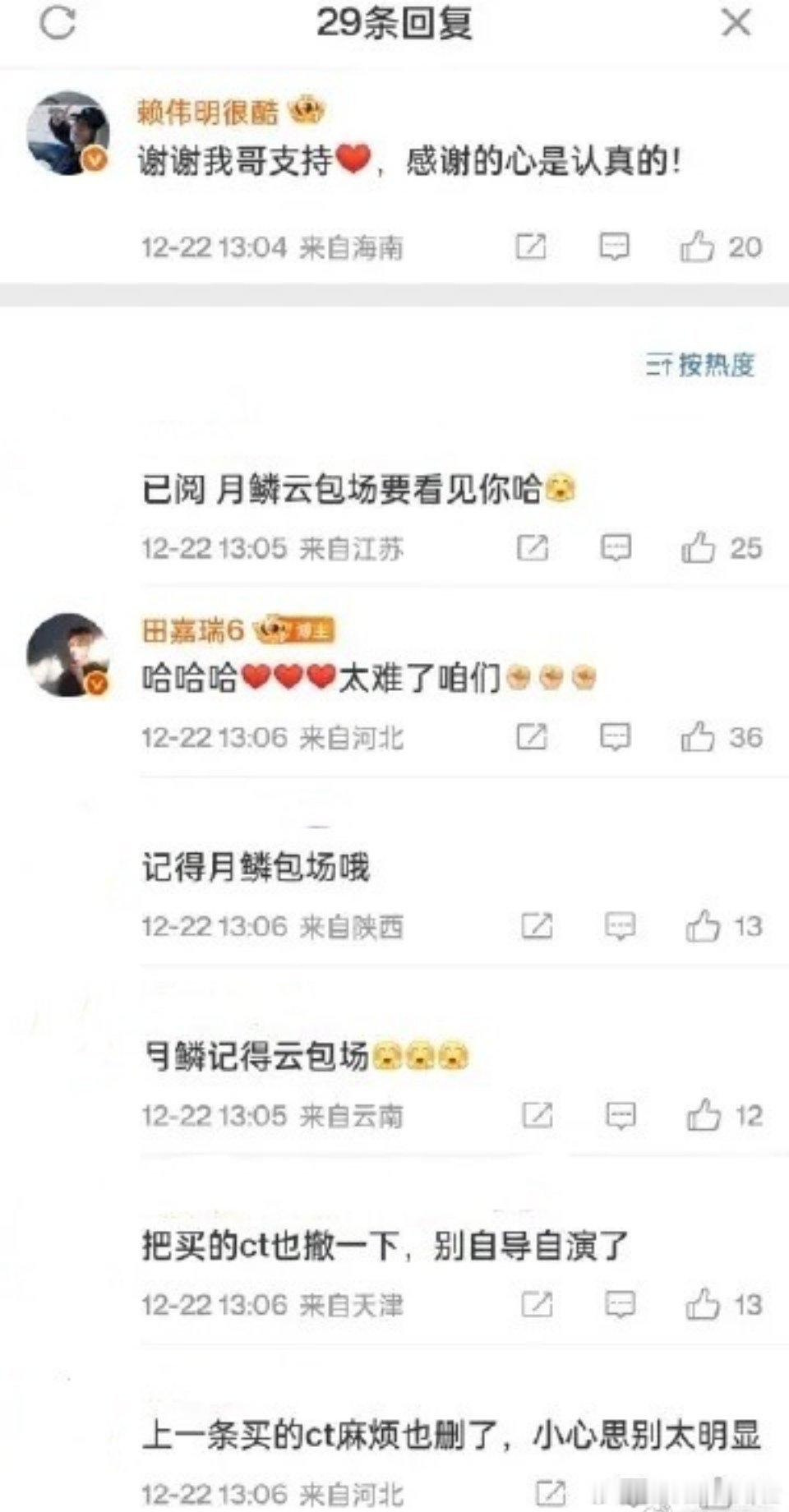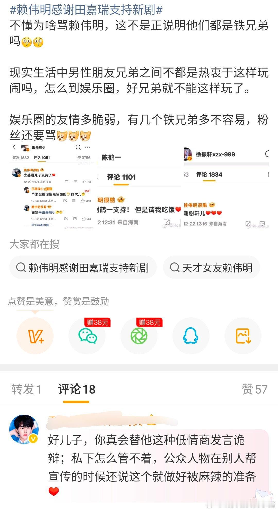 赖伟明回复田嘉瑞儿子被指没情商,后来删除了改成哥,粉丝贴脸要云包场…