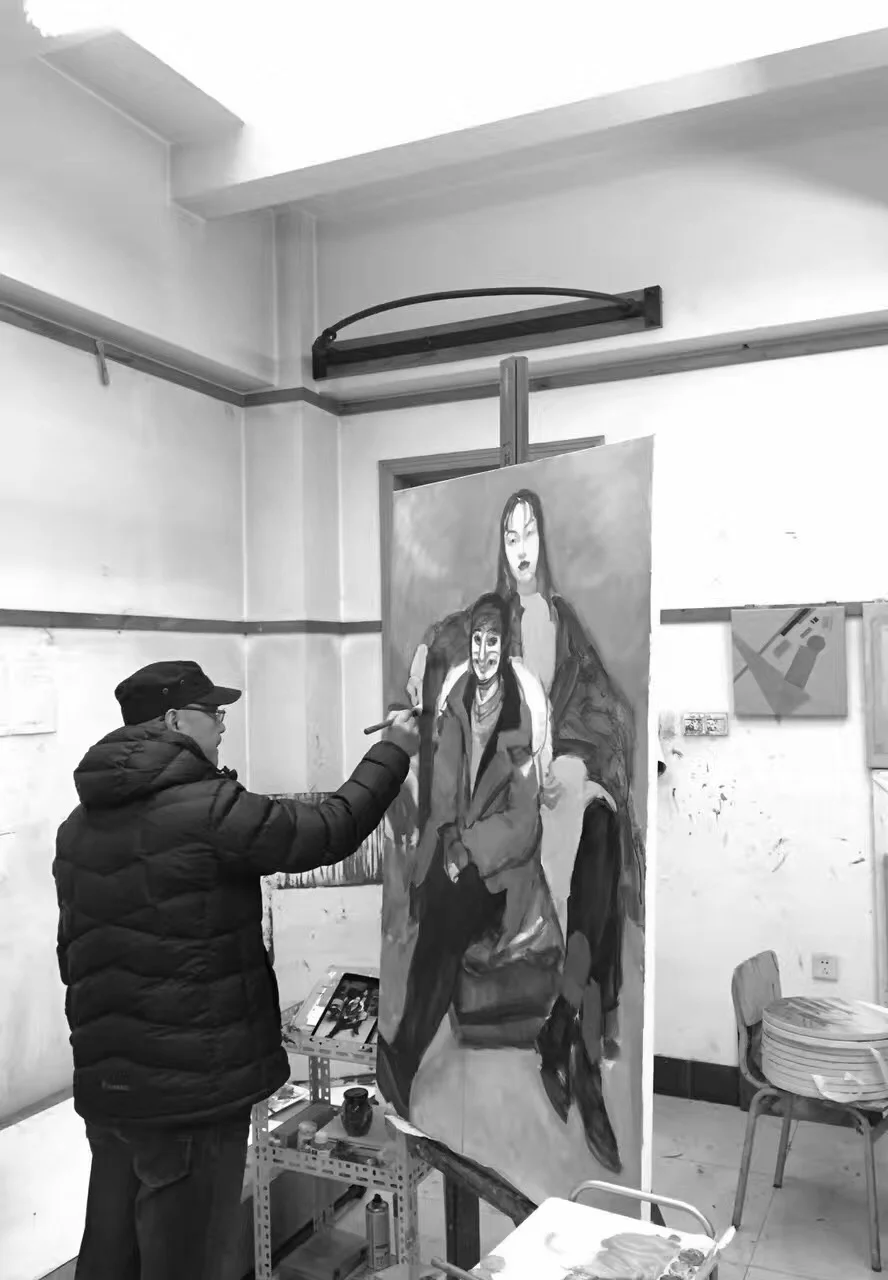 今天冬至。我有一幅写生完成于那年冬至的课堂上。教室暖气不够暖,两位做模特的学生都穿得很厚,于是这幅画就取名《冬至》。