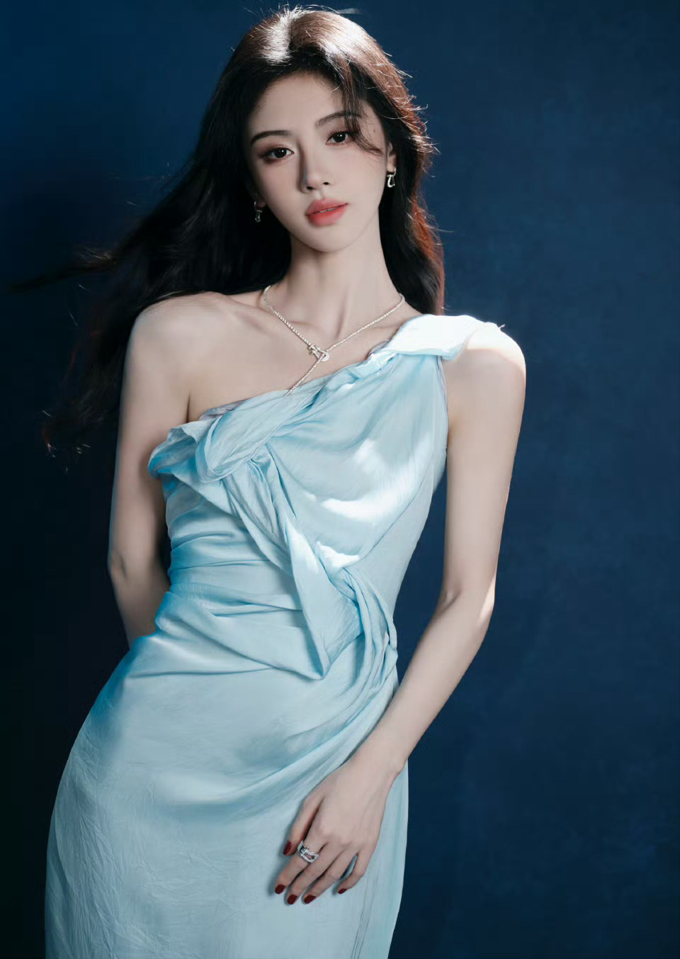 戴FRED珠宝的蓝色高定妖姬鞠婧祎
