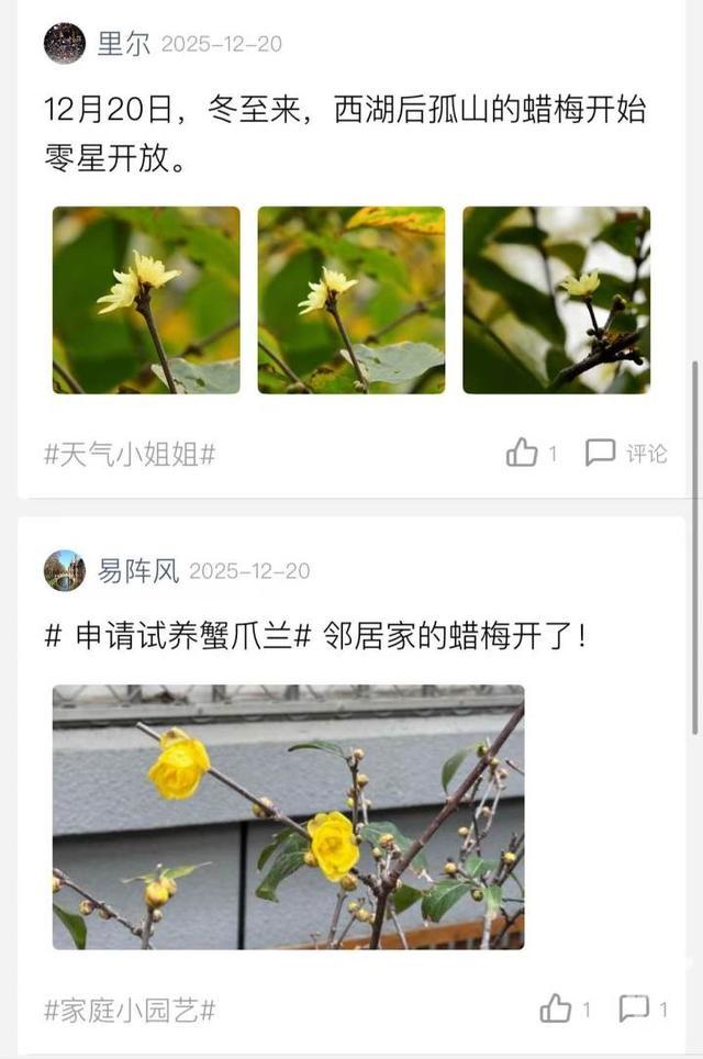 最近,在橙柿互动橙友圈里,不少橙友都在发一个很“冬天”的消息——蜡梅开了。