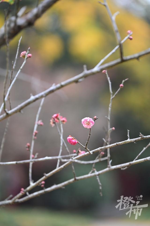 赏梅一般分三个阶段:寻梅、探梅和赏梅。眼下是寻梅期,含苞待放,灵峰景区转上一整圈,可能只在枝头上偶尔见到几朵花,就跟躲猫猫一样,考的是眼力和耐心,享受的却是寻到梅花的乐趣和喜悦。