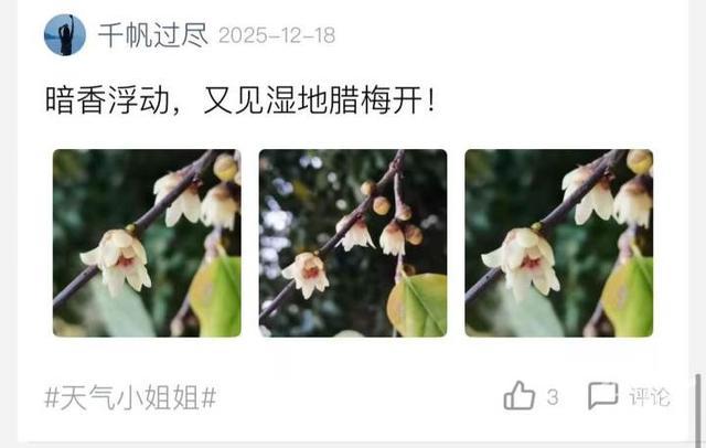 你去寻梅了吗?如果看到身边有蜡梅开了,欢迎来橙友圈#天气小姐姐#话题下发帖聊一聊。