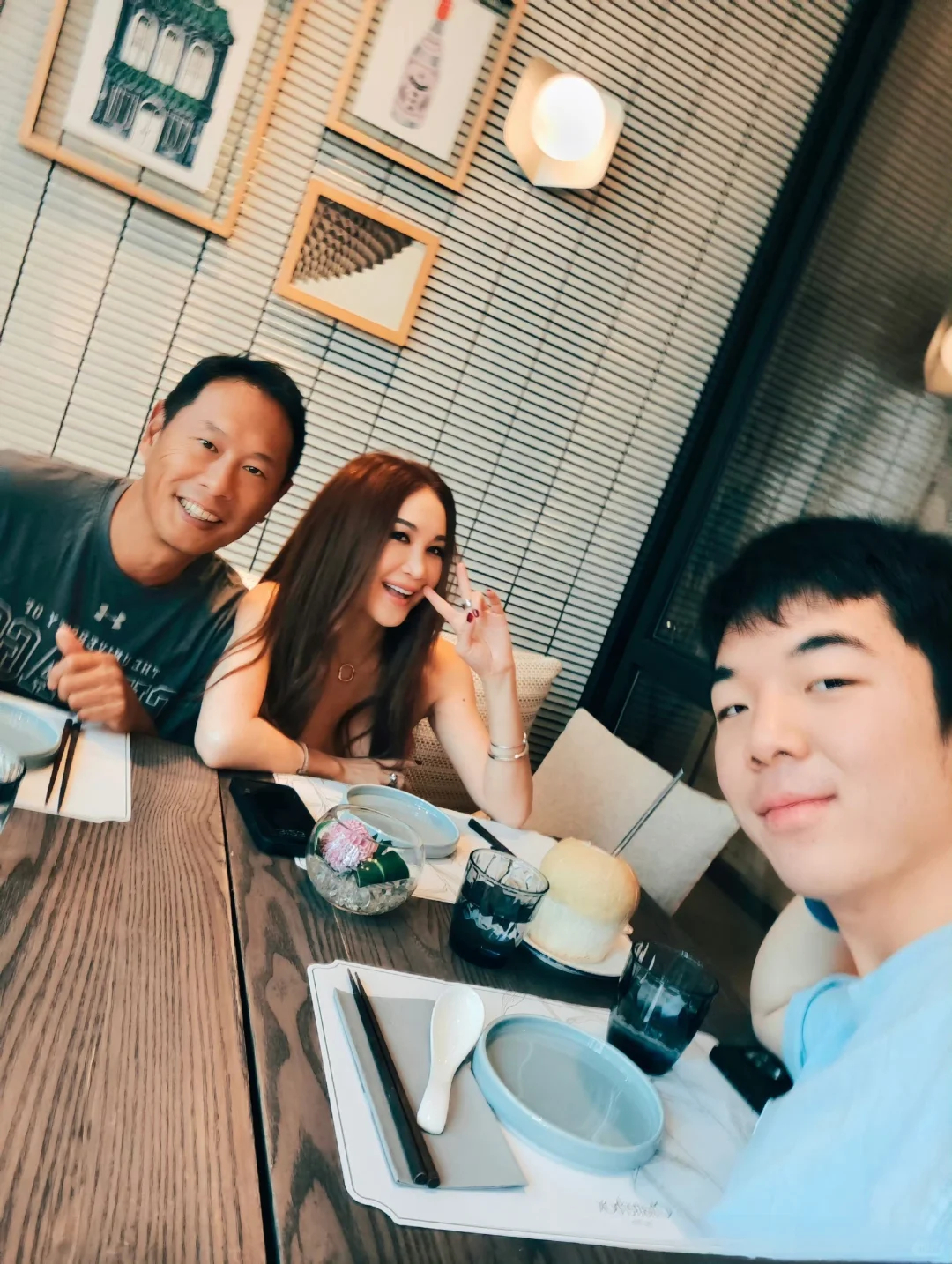 温碧霞一家三口,儿子是温碧霞收养的,所以和温碧霞长得完全不像