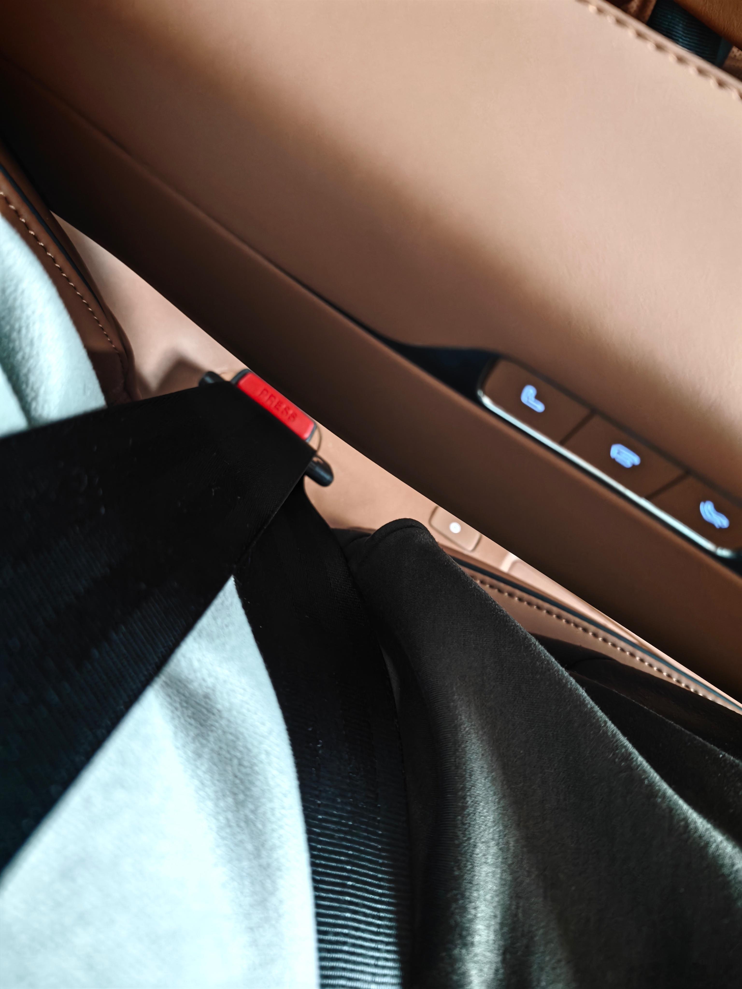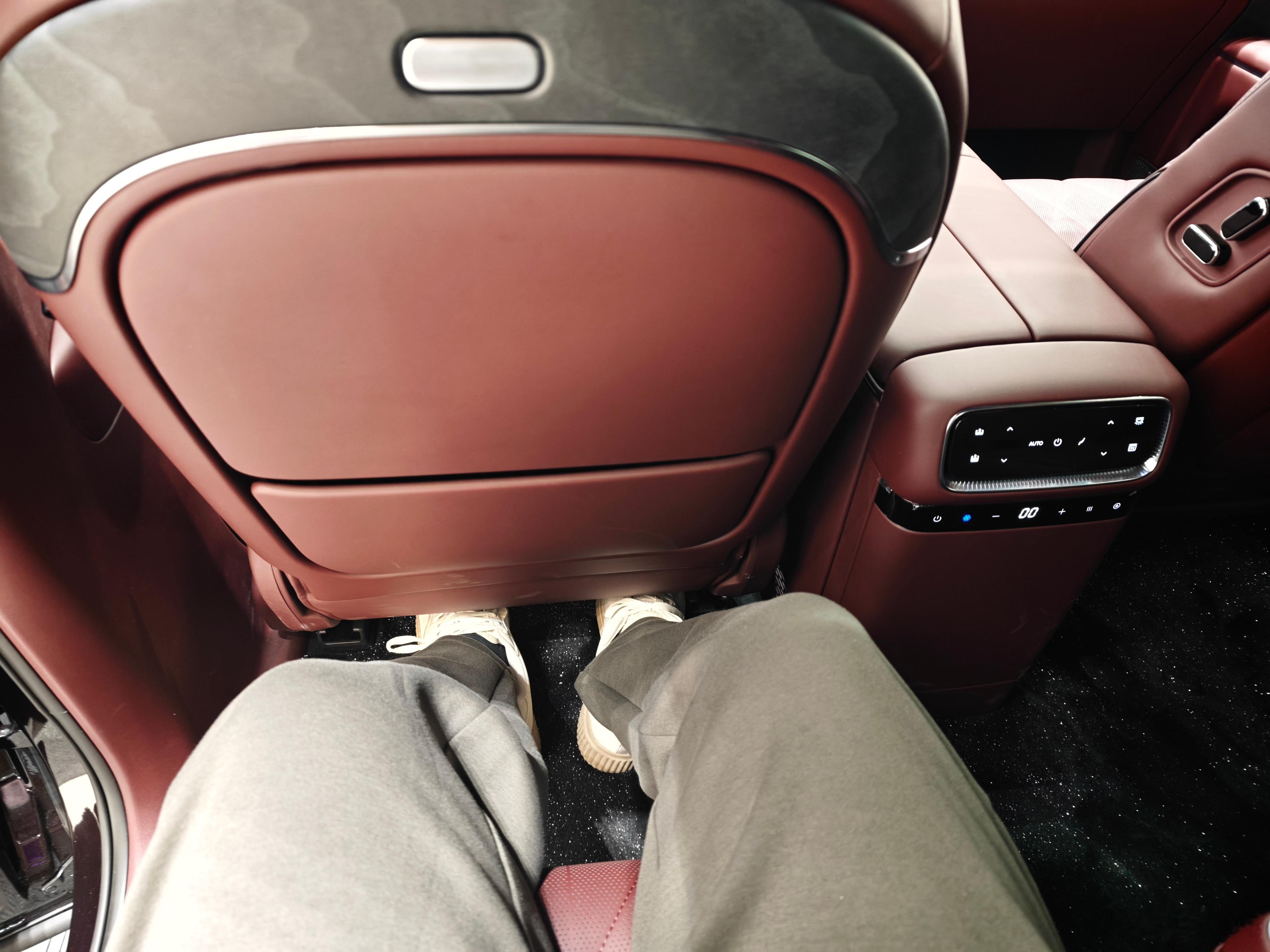 上次我看完泰山的静态后感觉并不是特别满意,这一结果持续到了今天,并且很不幸的是,还在加深。但动态上,它狠狠地挽回了一局。不得不承认,这台车上有很多设计上的小巧思。岚图很想用各种设计细节来凸显这台车配得上“泰山”这个堪称中国顶级的大IP,于是赋予了它高昂的头颅、挺立的身躯与闪耀的四只鞋,又在车内细节上融入了“高山流水”的元素。这一切成功换来了气场,但我没有发现这台车在空间利用率上有什么和外观一样的过人之处:对于我170的身高而言,“比较宽敞”,但也只是这样了,没有达到我对一台5.2m以上的SUV的期待。或许为了这个标准的长头设计,它不得已做出了一点牺牲,如果三排都是180身高的乘客,恐怕您得自己试一试。车内的总体设计我也不是太满意,至少和这个可以给高分的外观相比,绝对算是拖后腿了。一切依旧是2025年新能源车的标准设计,几块屏幕都在该有的位置上平铺直叙,搭配上菱格纹座椅和由上至下全覆盖的各种皮料,这就是现在532车型的标准设计答案。除了门板的“高山流水”,我更希望这台车能给我更多不一样的东西,但可惜,现如今“不一样”就代表着失败的风险。座椅不是特别软的类型,但它能让人感觉在努力地托着你的身体。除了主驾驶腰部的材质有点太过向外,让我感觉总有一块皮怼着我的后腰以外,其它都不错,是宽敞又有支撑感的座椅。第三排坐姿略微有一点点蹲,但真的很略微,椅子本身甚至支持坐垫的前后调节,以及可调角度巨大的靠背调节,这很不一样。不过两侧轮包依旧有点宽,虽然比N9好一些,没有特别影响横向空间,这可能就是与大角度后轮转向无法兼得的。说到座椅了,就不得不说说这个二排座。座椅本身功能非常丰富,乘坐舒适,承托到位,通风加热按摩零重力自不必说,还具备横向移动功能(亲测,在靠到最近的时候两个扶手之间也有一指的间隙,加上扶手包裹的都是软皮料,不用怕夹手),甚至右后座还有自适应体型的功能,但有两个细节我颇有微词:一是触控屏的设计,完全融入了扶手里,看起来很平整,但这个强行融合的设计完全不好用。首先是屏幕太小,字也很小,我这种眼神不好的人看着真的比较费劲;再就是这个角度是需要我勾着头去看的,这个姿势实在不是太优雅,如果看久了也不太利于颈椎;还有个问题是发热,我的手都不用触碰它,在这个不是特别冷的秋天里,都能感受到屏幕散发出的热气。二是座椅和扶手之间的干涉。我坐上右后位置的时候习惯性地准备系安全带,然而我就发现,那个宽大的扶手挡到我系安全带了(如图7),我需要比较别扭地避过它才能系安全带。至于外侧那个只在特定模式下才会开启的小扶手,就实在是有点短小了,高度也和内侧扶手略有差异,我的手肘枕着并不自在,同时我枕着它的时候会明显感觉到我的上臂和宽大的座椅侧翼有干涉。还有一个属于个例的问题,展车没有这个问题,试驾车有,就是后排电动遮阳帘的升降噪音。展车的遮阳帘升降十分安静,试驾车升降时的噪音却可以说是有点刺耳的水平了。吐槽得有点太多了,实在于心不忍,毕竟这是一台我主观很喜欢的气场拉满的“虎车”。下面让我狠狠夸一夸它值得夸奖的地方,也就是驾驶性。最值得夸的,是它的高能模式,这是我认为最适合在这台车上使用的模式。开启高能模式后,这座“泰山”好像突然发挥上了主观能动性,开始从从容容游刃有余,快速抽头变道超车可以说是手起刀落一气呵成,车尾跟随性出乎意料地好,动力响应迅猛又安静,刹车脚感一下变硬更加扎实,转向加重,干脆利索,底盘也抹掉了所有碎震余震,变得干净紧致,这太神奇了,我居然在一台这么大的SUV上获得了十足的操控感!与之相对应的,舒适模式下的底盘滤震反而有点生硬,余震碎震都会传进车内,小震动和抖动都偏多,飞坡和过起伏路面时反而又有轻微的忽悠感,是我不太喜欢的感受,这套三腔空悬在我看来是把技能点在了运动感上,或许它就是更适合硬一点的设置。好在,你可以在自定义模式下灵活设定底盘、转向和动力等选项,让它完美匹配你的喜好。动力响应哪怕是舒适模式都很好,随踩随有,也不怎么抬头。刹车如果不选最激进那档就会感觉有些偏软,虽然也是线性的,但总会让我觉得信心没那么强,不过急刹车依旧是不怎么点头的。是的,这套底盘的姿态抑制表现得特别好,包括侧倾,这么大这么重的车我敢在环岛里开40绕圈圈,侧倾完全是让人放心的——当然再快就不行了,不能违抗物理定律。底盘的安定性也是极佳的,结合上这台车超绝的体量感,开高速感觉就像吸在地上一样安稳,体验一流。说到高速驾驶,就不得不提到隔音静谧性了。动起来后的隔音非常好,整台车和外界环境是完全有隔绝感的,这足以说明它的优秀——当然由于巨大的撞风面积,时速超过110以后风噪就会袭来,但这同样是大SUV逃不过的物理定律。唯一的小问题在于,正后方的环境隔音比较一般,车子刚开出门店后,我还坐在第二排,正后方一台水泥搅拌车在等红灯,搅拌车发动机怠速声音的真实感让我忍不住向销售确认了一下“窗户到底关紧了吗”。转向手感我需要小小吐槽一下,它很稳重,很有安全感,但充满了电子味,最轻的模式下有点太轻,往上的两个档位让我感觉它就是硬生生往上用电子算法给它加了重量,让人有点要和它较劲的感觉,但并不让人难受,如果不去