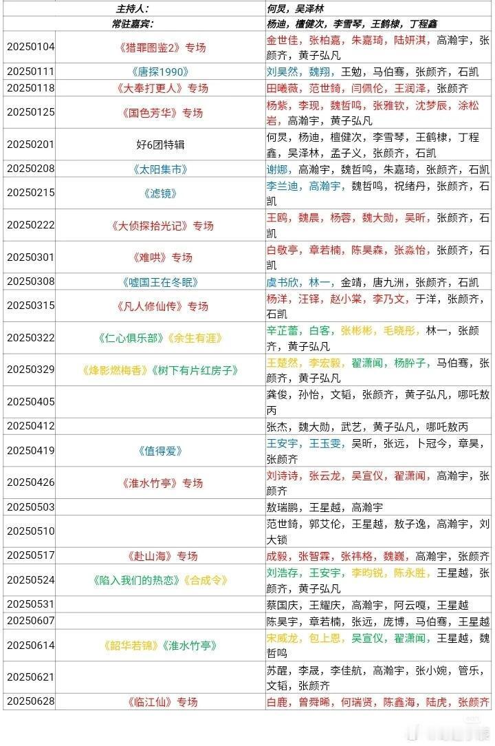 2025年你好星期六嘉宾全汇总2022、2023、2024可见合集前篇。今年有1