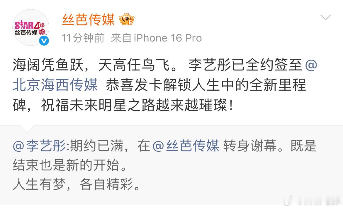李艺彤和平解约李艺彤和平解约!恭喜!