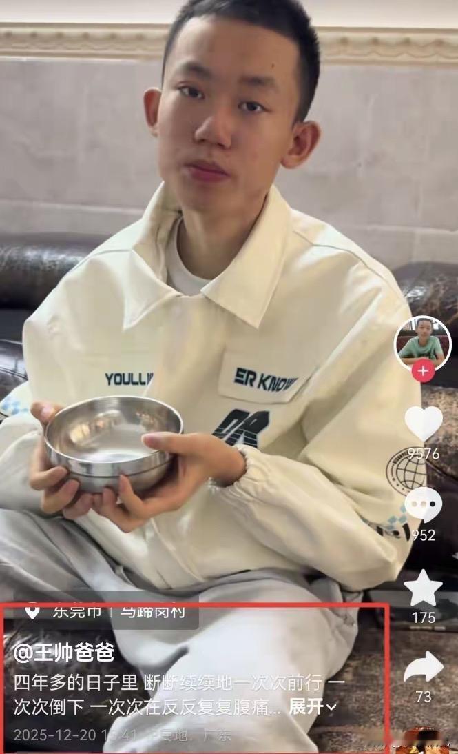 湖边纵身跳,痛苦变句号。 20岁的东莞小伙王帅跳湖去世,仅仅20岁!他在选择跳楼未遂之后,又在凌晨5点跳湖,随后就永远的离开这个世界。 朋友震惊,同学悲痛,亲戚泪流,父母肠断。 我们可以看到他在跳楼未遂后,弄得满身白灰,应该是没有合适的地方跳楼,随后又选择了跳湖。 他因为是年纪轻轻得了疾病,经常呕吐,经过检查,他被确诊了格林巴利综合症。 我在2025年春节前,呕吐了三个多月,我没有去检查,因为我怕花钱,而且我有排斥医院的习惯,我抗了一年了,基本上已经快完全恢复, 2025年11月以后,接近月末,我才大略消除了痛苦,先是每到中午11:00 ,就痛苦不堪,也可以用生不如死来形容。 人生之多艰,果然是真实不虚。
