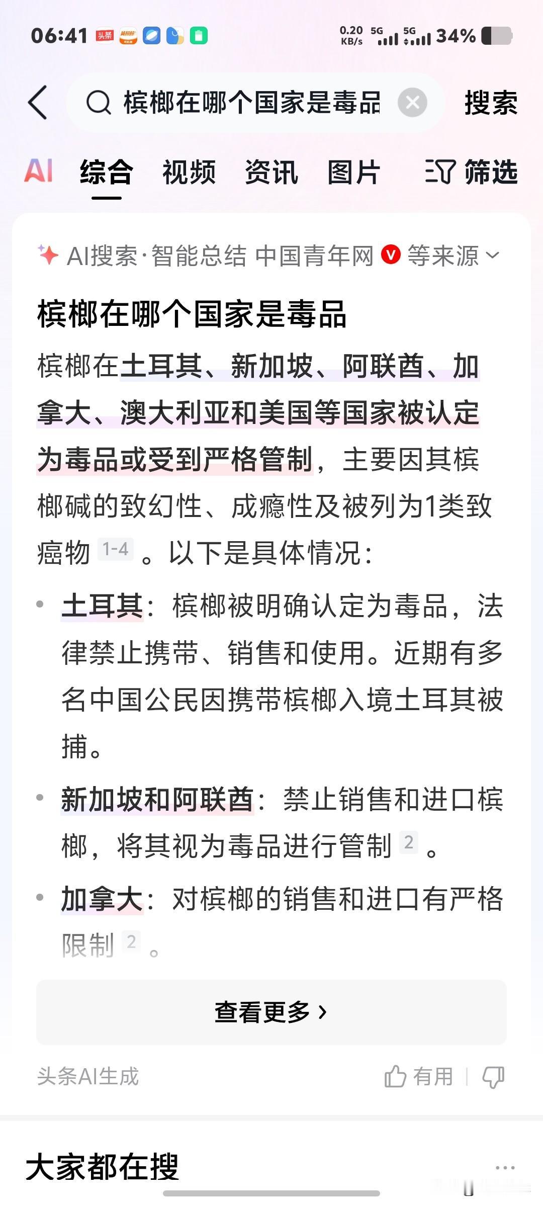 槟榔在2003年的时候就已经被世界卫生组织列为一级致癌物,禁止销售贩卖。这个东西被全世界有40多个国家是全面禁止的,就连大麻合法化的泰国和加拿大也是不允许售卖的。还被好多国家直接认定为毒品禁止销售。但是在我国的超市,最显眼的地方就跟口香糖一样就可以轻松获得。我搜了一下各大网络购物平台,都可以轻而易举买到。我家楼下的小卖部就能买到槟榔,有人说:我们国家是全世界禁毒最好的国家,槟榔为啥就不禁止售卖呢?大家怎么看?评论区留言吧!!!