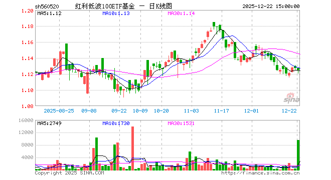 12月22日,红利低波动100ETF基金(560520)跌0.18%,成交额109.19万元。当日份额增加100.00万份,最新份额为475.10万份,近20个交易日份额增加100.00万份。最新资产净值计算值为533.54万元。