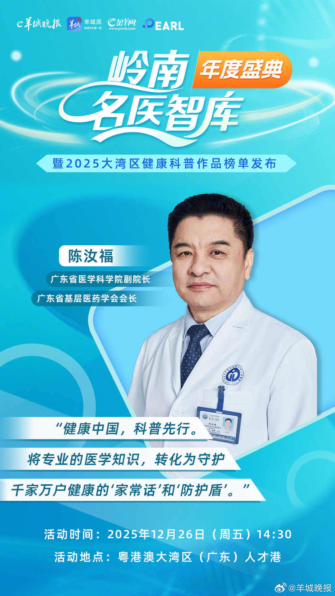【倒计时3天!顶流齐聚,共赴健康之约】#岭南名医智库年度盛典# 即将高能启幕!行业权威大咖、跨界领军人物、科普先锋达人齐聚广州,这是一场专业与洞察并存的巅峰对话,也是一次思想与趋势的深度碰撞。科普绘新篇,共筑健康梦,我们现场见!#2025大湾区健康科普作品征集活动##2025大湾区健康科普作品榜单#