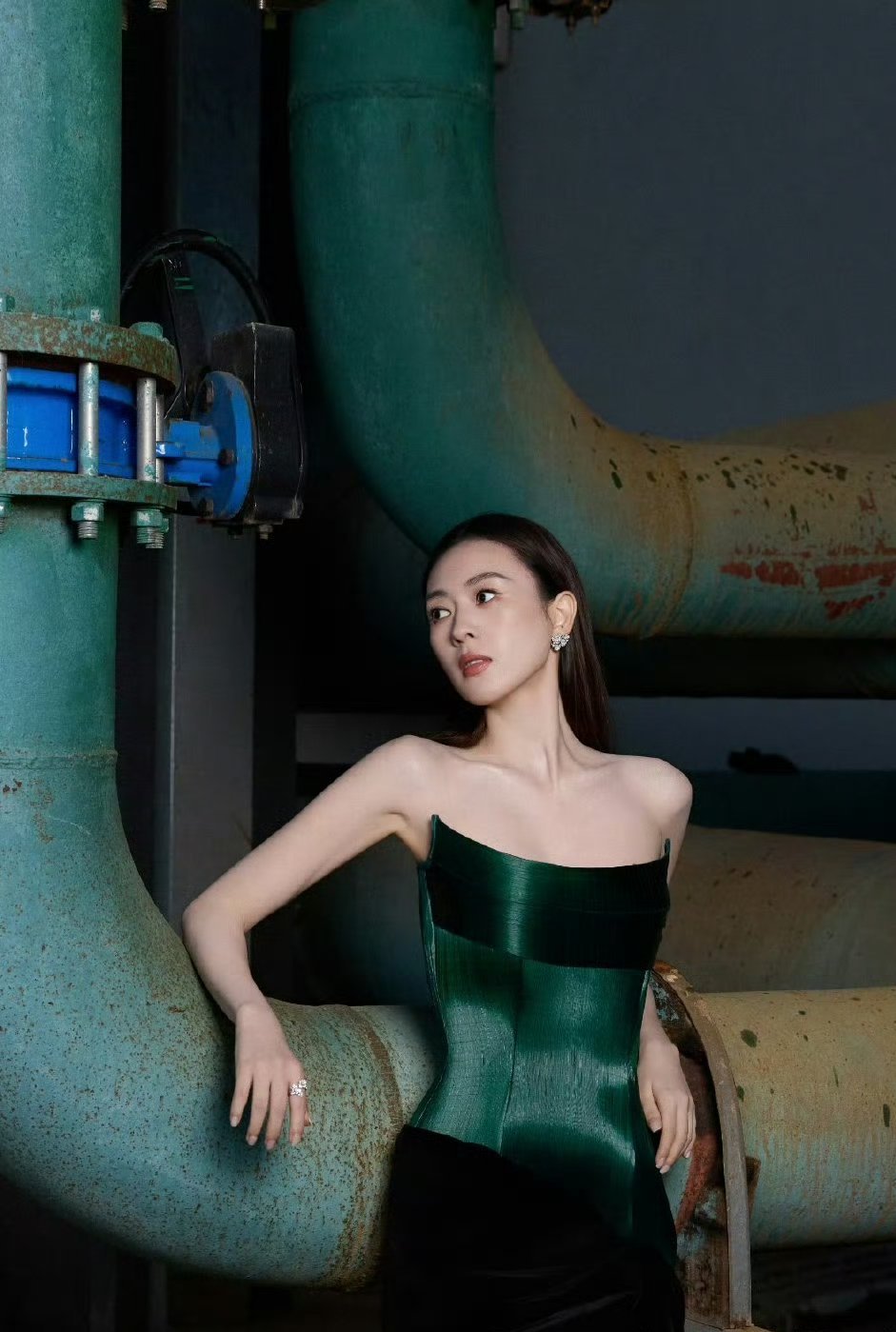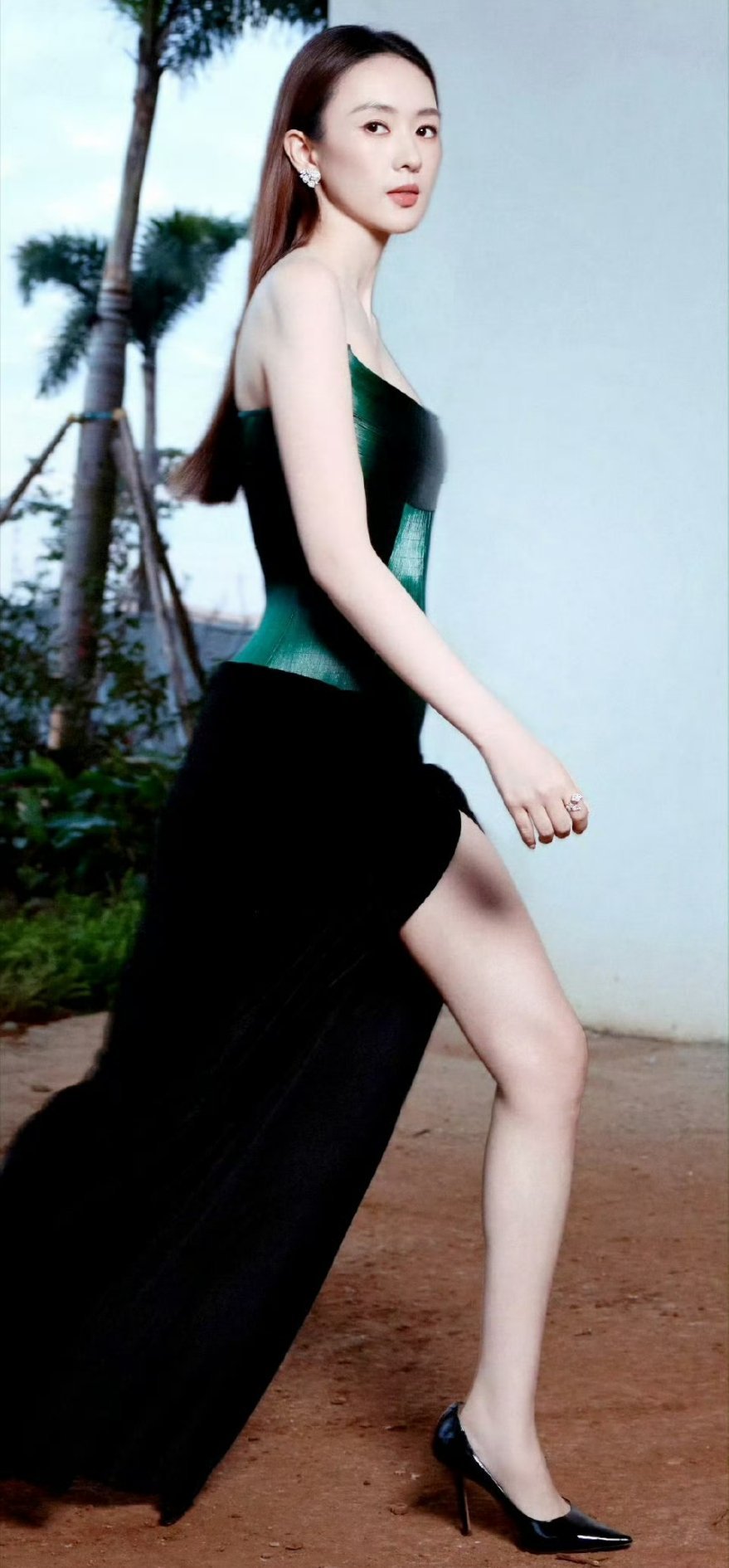 童瑶一袭墨绿抹胸裙太惊艳,身段窈窕气质绝了!童瑶分享最喜欢的明星女人怎样穿搭