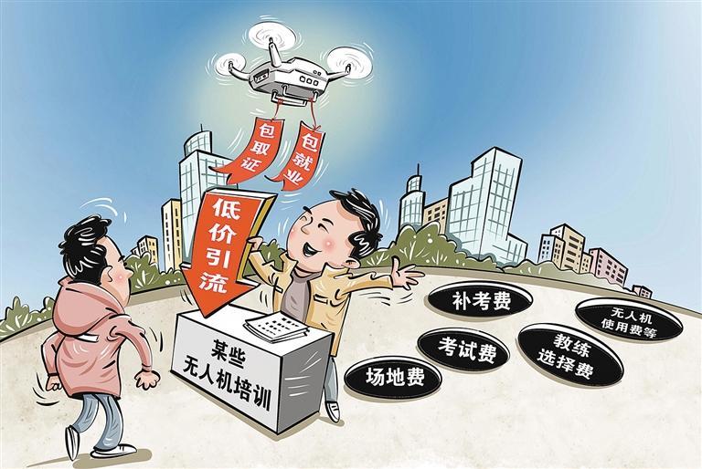 近年来,无人机培训异常火热,截至12月15日,今年无人机培训相关企业注册数量已超过15500家;而去年同期,这一数据仅为4200多家。行业繁荣的背后也有乱象。为了抢客源,有的机构先低价引流,后续在培训考试过程中补收场地费、考试费、教练选择费、无人机使用费等各种费用。有的机构打出“包取证”“包就业”等噱头,实则为虚假承诺。还有的机构无办学资质,不少人上当受骗。对于这类问题,有关部门应加强执法检查,及时查处、清理违法违规现象,杜绝不合规机构钻漏洞,同时督促线上平台下架相关不实广告信息,避免更多人遭受损失。行业内部也应出台自律公约,规范市场秩序,引导企业经营好口碑,降降行业虚火。(时锋)