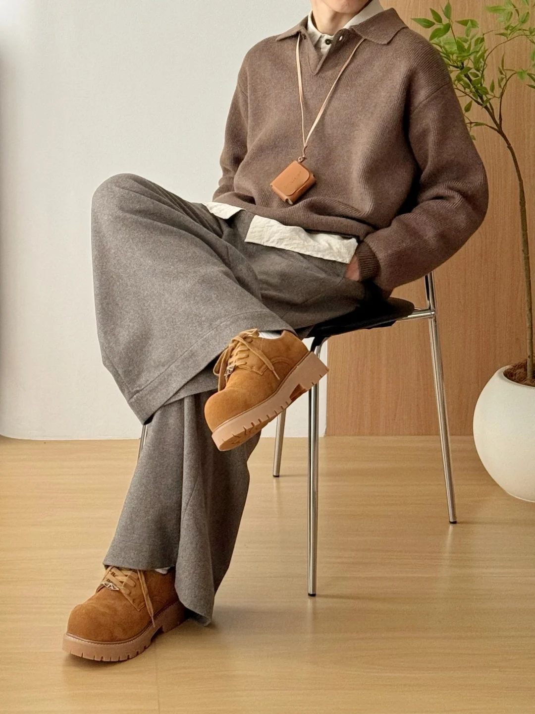 秋日森林中的时尚女王,黑色皮靴与高领毛衣的完美搭配,尽显优雅与自信。